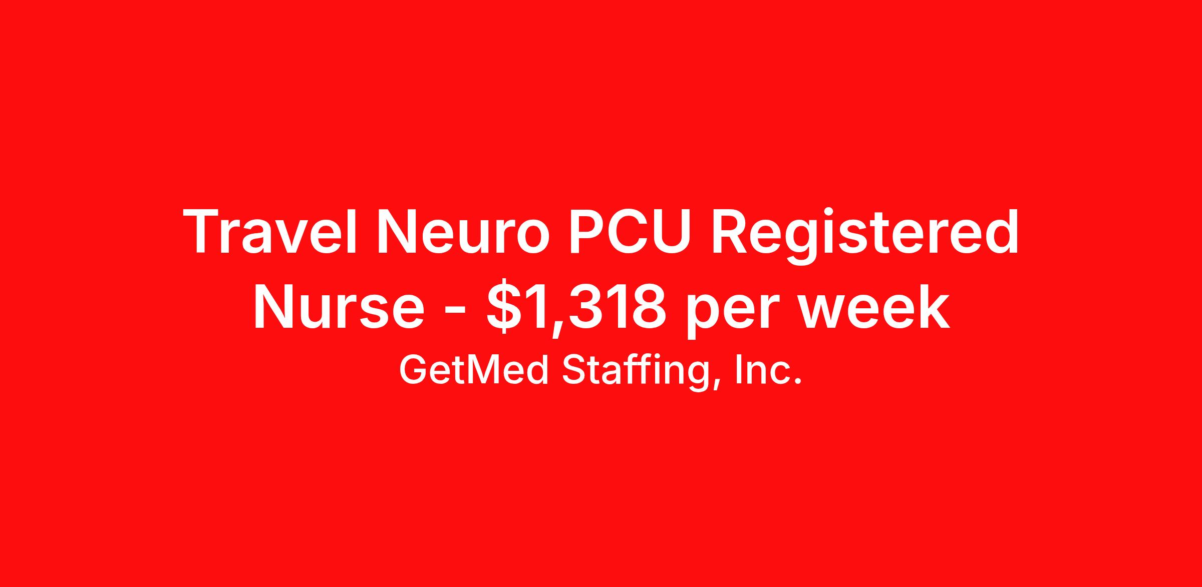 Travel Neuro PCU Registered Nurse - $1,318 per week