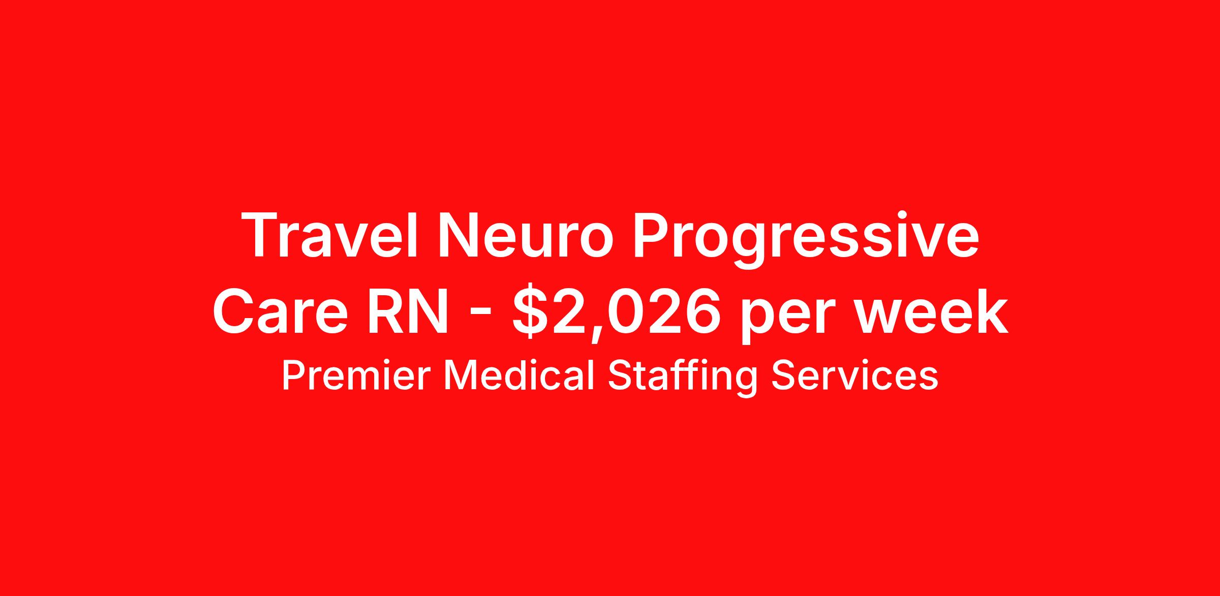 Premier Medical Staffing Services is seeking a travel nurse RN Neuro PCU - Progressive Care Unit for a travel nursing job in Greensboro, North Carolina. Job Description & Requirements Specialty: Neuro PCU - Progressive Care Unit Discipline: RN Start Date: 04/06/2026 Duration: 13 weeks 36 hours per week Shift: 12 hours Employment Type: Travel Premier Medical Staffing Job ID 622912. Pay package is based on 12 hour shifts and 36 hours per week (subject to confirmation) with tax-free stipend amount to be determined. Posted job title: RN PCU About Premier Medical Staffing Services Premier Medical Staffing Services, LLC is a nationally expanding healthcare staffing firm for healthcare professionals and companies. We understand our clients’ need for highly qualified, expertly trained medical professionals and are passionate about helping clinicians find employment opportunities that fit their personality and needs. Able to accommodate the ever-changing needs of the healthcare landscape, we offer per-diem, contract and direct hire placements to support the unique needs of each industry sector. Premier Medical Staffing Services is Joint Commission Certified, a Military Spouse Employment Partner and is certified as a Women’s Business Enterprise. We are proudly nurse owned.