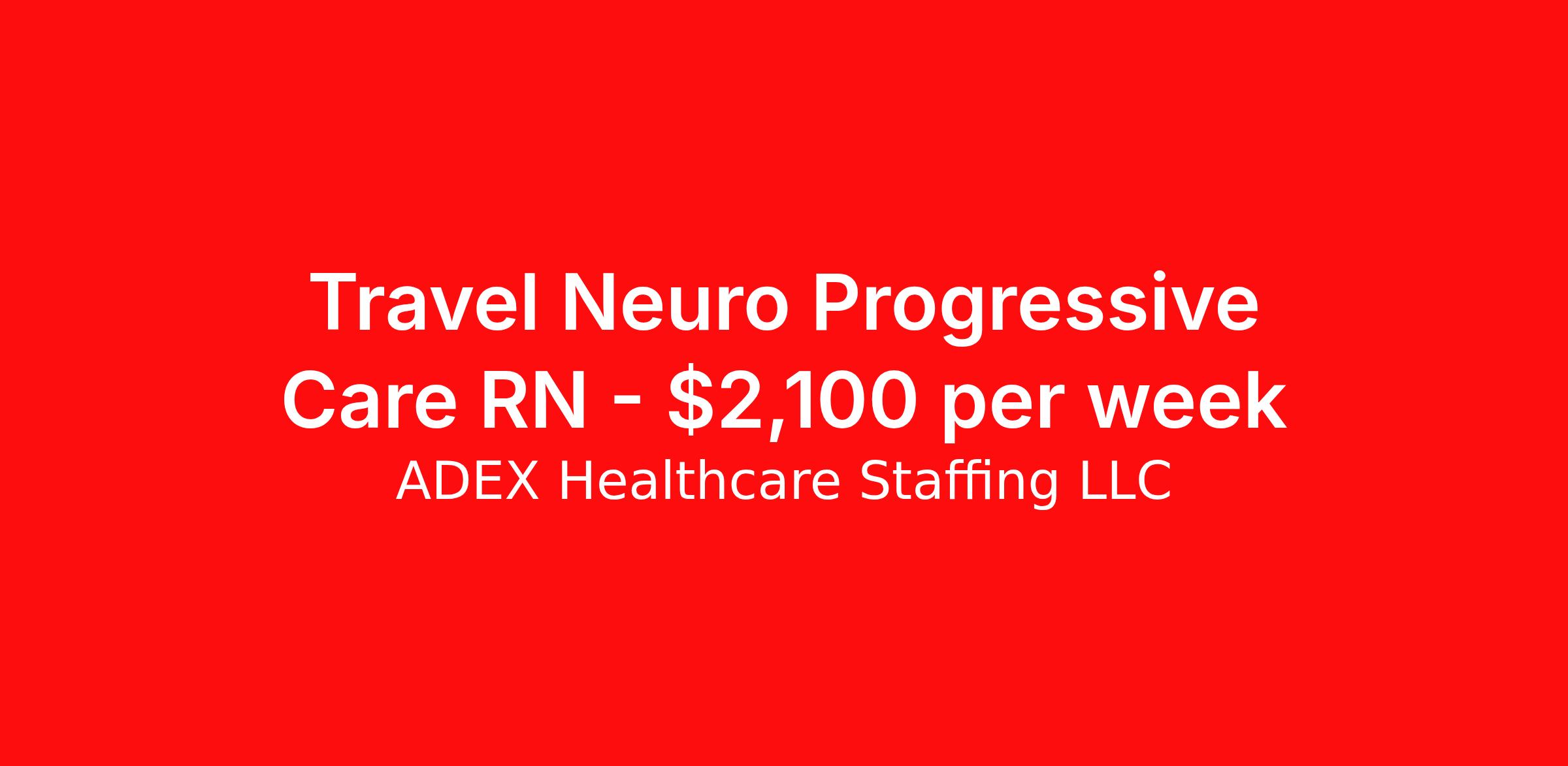 ADEX Healthcare Staffing LLC is seeking a travel nurse RN Neuro PCU - Progressive Care Unit for a travel nursing job in Greensboro, North Carolina. Job Description & Requirements Specialty: Neuro PCU - Progressive Care Unit Discipline: RN Start Date: 04/06/2026 Duration: 13 weeks 36 hours per week Shift: 12 hours, days Employment Type: Travel RN Position Job Notes: Travel or Local Registered Nurse needed for ASAP start. A minimum of 2 years of recent hospital bedside experience is required. Candidates must be able to start within 5 weeks. Opportunity for extension upon successful completion of the initial assignment. $750 referral bonus available. Opportunity: RN - Stepdown Job Details: • Work three 12-hour day shifts from 7:00 AM to 7:00 PM • Rotating weekends required • Float required as needed across all Cone Health facilities • Patient ratio of 5:1 for all shifts • 24 hours of orientation provided • Minimum 2 years of experience required - first time travelers accepted • Required certifications: BLS, ACLS, NIH Stroke Scale • Neuro Progressive Care Unit experience required • Previous Charge RN experience preferred • Must pass mandatory EKG exam (2 attempts allowed) • Epic charting system experience required • Skills include: CVA care, External CPAP/BiPAP, TR band management, Yale Swallowing screen • Care for medical neurological patients including stroke, seizure disorders, traumatic brain injury, and movement disorders • Work with centralized cardiac monitoring surveillance • Zero tolerance policy for tardiness and unexcused absences • Staff scheduled for 6-week periods via self-assisted scheduling through Optilink • Two pre-approved time off requests allowed • Non-billable modules averaging 2-4 hours completed during orientation Facility: This healthcare facility features a 30-bed Medical Neuroscience Progressive Care department with a primary focus on caring for medical neurological patients. The unit provides comprehensive interdisciplinary support including IV teams, physical therapy, respiratory services, pharmacy, rapid response teams, and specialized monitoring through a Centralized Cardiac Monitoring Department. The facility maintains high standards for patient care with modern equipment and comprehensive support services for complex neurological conditions. Location: Greensboro, NC Greensboro offers a vibrant blend of urban amenities and Southern charm in the heart of North Carolina's Piedmont region. The city provides excellent cultural attractions, dining, and outdoor recreation opportunities, making it an attractive location for healthcare professionals seeking career growth in a dynamic metropolitan area. Adex Job ID 3216656. Pay package is based on 12 hour shifts and 36 hours per week (subject to confirmation) with tax-free stipend amount to be determined. About ADEX Healthcare Staffing LLC ADEX has been placing healthcare professionals across the US since 2004. Originally founded in Atlanta, GA, the company's headquarters are now located in Tampa, FL. JCAHO certified since 2009. Benefits Referral bonus