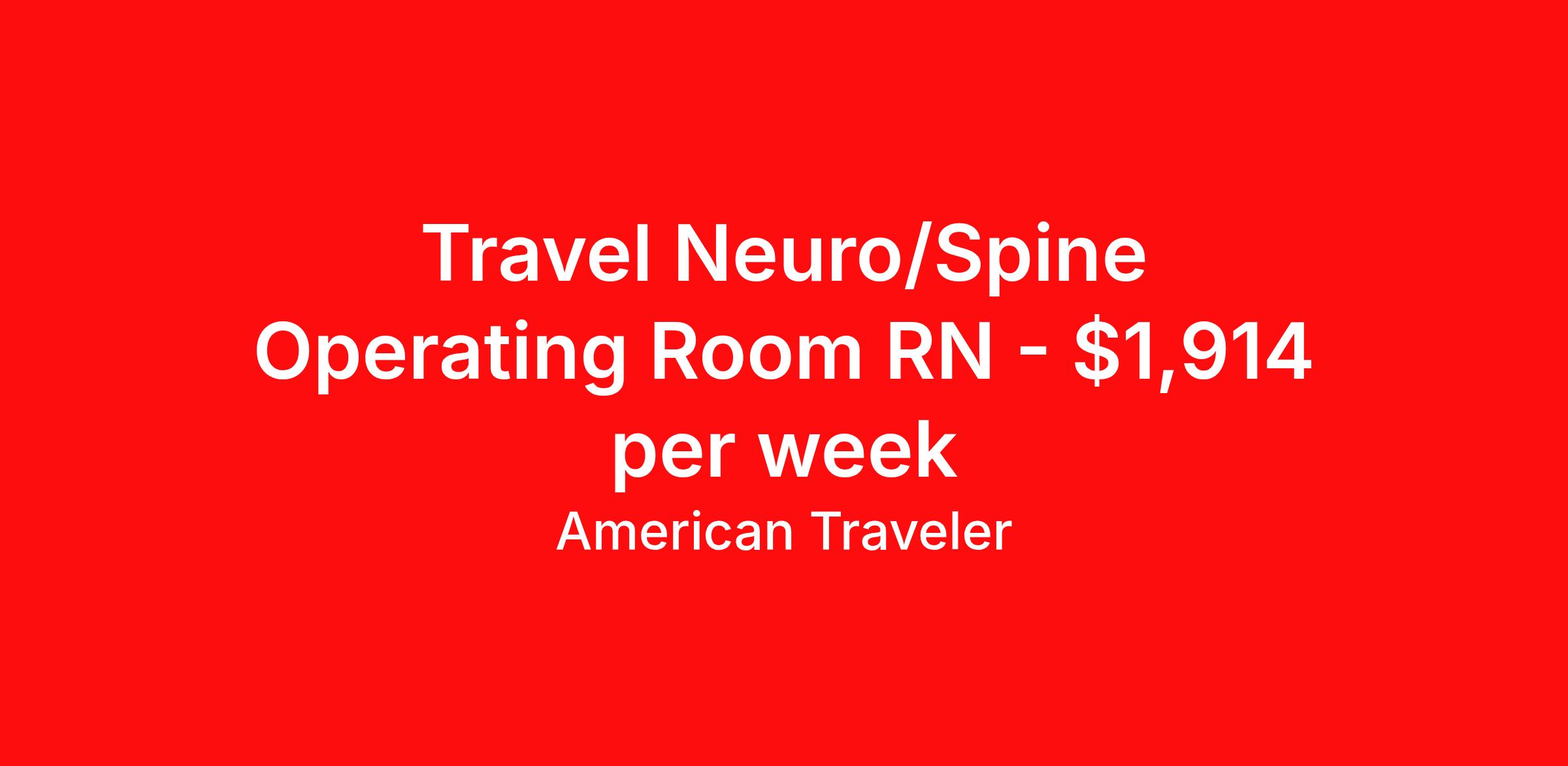 American Traveler is seeking a travel nurse RN OR - Operating Room for a travel nursing job in Birmingham, Alabama. Job Description & Requirements Specialty: OR - Operating Room Discipline: RN Start Date: 04/06/2026 Duration: 13 weeks 40 hours per week Shift: 8 hours, days Employment Type: Travel Assignment Overview Shift: Days, 5x8hrs Hours: 40 hrs/wk Start Date: Apr 6, 2026 Length: 13 weeks Openings: 1 Description American Traveler is hiring a travel RN for a Main OR position specializing in neuro/spine surgery, requiring 2 years of OR experience and an Alabama or compact RN license. Details Work in the Main OR of a large 595-bed acute care hospital in Birmingham, AL Neuro/spine surgical patient population with 1:1 patient ratio 24-bed OR unit Preferred experience with Da Vinci Robot, Maxillofacial, and Orthopedic procedures Schedule is 4x10-hour shifts, 6:00 AM – 2:30 PM On-call is required; specific call schedule varies by team and is discussed during the interview No weekend hours required EMR: Cerner Floating required within a 25-mile radius of home campus Requirements Active AL RN license or compact RN license required and must be in hand at time of consideration Current BLS and ACLS certifications (AHA only; American Red Cross not accepted) Minimum 2 years of recent neuro/spine OR experience required Candidate's SSN and DOB are required for consideration An area-specific skills checklist is required for consideration Additional Information Provide perioperative nursing care to neuro/spine surgical patients Navy scrubs required; t-shirts, fleece jackets, hooded garments, and nail polish are not permitted Joint Commission-accredited facility recognized for excellence in surgical care, stroke care, cardiovascular services, and more Located in the Homewood area of Birmingham, near attractions such as the Birmingham Zoo, Birmingham Botanical Gardens, and Vulcan Park & Museum American Traveler Job ID P-680003. Pay package is based on 8 hour shifts and 40 hours per week (subject to confirmation) with tax-free stipend amount to be determined. Posted job title: Travel RN - Operating Room About American Traveler With over 25 years of experience, American Traveler has established a reputation for outstanding customer service. Our team ensures a smooth, worry-free experience for those starting on or expanding their travel nursing and allied careers. With thousands of travel nursing and allied jobs nationwide, our attentive and approachable recruiters find positions that align perfectly with your career aspirations and personal requirements. American Traveler offers exceptional benefits, including premium medical, dental, vision and life insurance beginning day one of your assignment, generous 401(k) match, substantial housing stipends, and more. Additionally, with 24/7 support and access to our in-house clinicians, you are assured confidence and comfort throughout your assignment. With our team behind you, you can relax and enjoy a rewarding travel career.