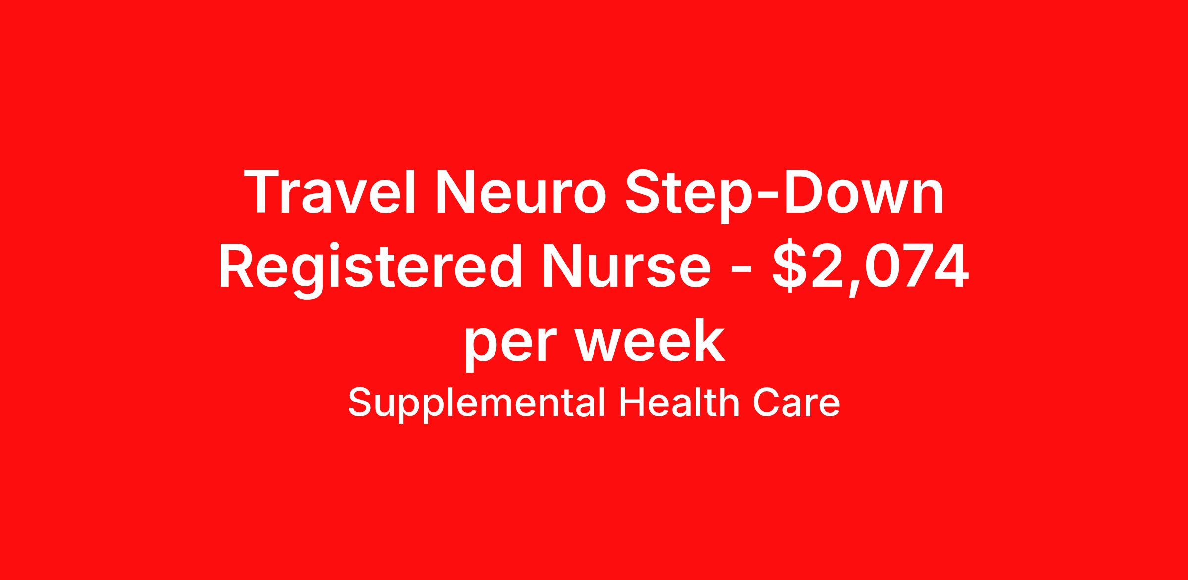 Supplemental Health Care is seeking a travel nurse RN Neuro PCU - Progressive Care Unit for a travel nursing job in Evansville, Indiana. Job Description & Requirements Specialty: Neuro PCU - Progressive Care Unit Discipline: RN Start Date: ASAP Duration: 13 weeks 36 hours per week Shift: 12 hours, nights Employment Type: Travel Job Description: Supplemental Health Care is connecting Neuro, Step Down Registered Nurses with top-tier hospital contracts in Evansville, Indiana. Travel or stay local, either way, we’ll guide you to an opportunity that matches your goals, offering excellent pay, benefits, and support. Qualifications: Current Indiana Registered Nurse License / Certification American Heart Association BLS 1 to 2 years of recent Neuro, Step Down experience Neuro, Step Down Registered Nurse Contract Details: $1,908 - $2,074 per week* Weekly pay 13-week contract with possibility to extend NOC shifts available *Estimated weekly payment may include both taxable wages and tax-free reimbursements for meals, housing, and incidentals. Please speak with a recruiter for details. What We Offer: Full medical, dental, vision, life, and even pet insurance! Round the clock support. No matter where you are or what time it is, Supplemental Health Care is standing by. SHC's Share the Care referral program is the most dynamic, profitable referral program in the industry. 401(k) Retirement Savings Program with a wide range of investment options. Discounted and free online access to CEU courses through Supplemental University. Apply now to launch your next Neuro, Step Down Registered Nurse assignment, or ask our team about other exciting Registered Nurse opportunities. Supplemental Health Care is an Equal Opportunity Employer. All candidates, including veterans and those with disabilities, are encouraged to apply. SHC will consider for employment qualified applicants with criminal histories in a manner consistent with the requirements of applicable local, state, or federal law. To learn more, visit www.shccares.com/eeo Supplemental Health Care Job ID 1465881. Pay package is based on 12 hour shifts and 36 hours per week (subject to confirmation) with tax-free stipend amount to be determined. Posted job title: Neuro, Step Down Registered Nurse About Supplemental Health Care At Supplemental Health Care, a simple belief in the power of caring guides a unique commitment to world-class service in healthcare staffing. For 40 years, we’ve supported talented professionals pursuing their life calling in hospitals, schools, home health, corrections, behavioral health, and other settings. At SHC, we inspire vital connections and enrich lives and inspire better outcomes. As recipients of the Best in Staffing Awards for both Client and Talent, Supplemental Health Care is proud to be among only 2% of staffing companies singled out for the distinction based on the real feedback of our employees and the clients we serve. SHC has also earned The Joint Commission’s Gold Seal of Approval and is named among the Largest Health Care Staffing companies in the United States by Staffing Industry Analysts. We are also thrilled to recognize our very own SLP, Dr. Kelly Byrd as the American Staffing Association 2024 National Staffing Employee of the Year and Health Care Sector All-Star. We’re honored to connect Dr. Byrd to employment, share her incredible story, and support her family literacy nonprofit. For everyone that we serve, SHC is the place where caring hearts thrive. Benefits Referral bonus Benefits start day 1 401k retirement plan Continuing Education Discount program Health savings account