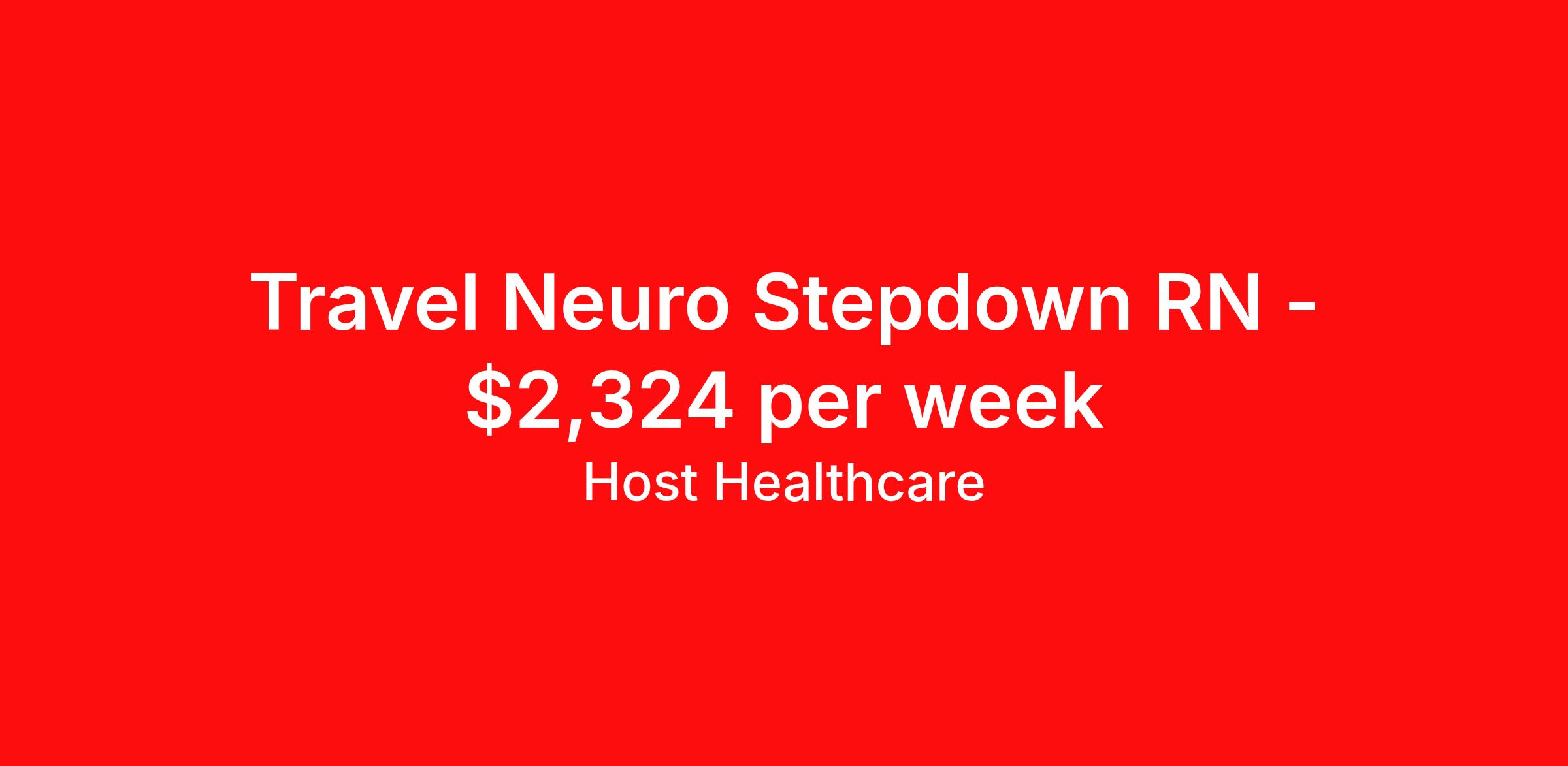 Host Healthcare is seeking a travel nurse RN Neuro PCU - Progressive Care Unit for a travel nursing job in Cleveland, Ohio. Job Description & Requirements Specialty: Neuro PCU - Progressive Care Unit Discipline: RN Start Date: 04/17/2026 Duration: 13 weeks 36 hours per week Shift: 12 hours, nights Employment Type: Travel Host Healthcare Job ID a1fVX000002z7RdYAI. Pay package is based on 12 hour shifts and 36 hours per week (subject to confirmation) with tax-free stipend amount to be determined. Posted job title: RN - PCU About Host Healthcare At Host Healthcare, we provide a truly comfortable experience as you explore your travel nursing, therapy, or allied career. We make your travel healthcare journey easy by taking care of all the details, so you don’t have to. We are on a mission to help others live better and we do this by helping the healers of the world be as comfortable as possible. With access to tens of thousands of travel nursing, therapy, and allied jobs in all 50 states, our responsive and friendly recruiters find your dream position based on what’s important to you. During your assignment, get access to premium benefits, including Day 1 medical that continues up to 30 days between assignments, 401K matching, travel reimbursements, dedicated housing support, and more. We also offer 24/7 support from our team and access to our on-staff clinicians so you can feel comfortable and confident throughout your entire assignment. Travel comfortably with Host Healthcare. Benefits Referral bonus School loan reimbursement Vision benefits Wellness and fitness programs Company provided housing options License and certification reimbursement Life insurance Medical benefits Mileage reimbursement Pet insurance Discount program Employee assistance programs Guaranteed Hours Health savings account Holiday Pay 401k retirement plan Continuing Education Dental benefits