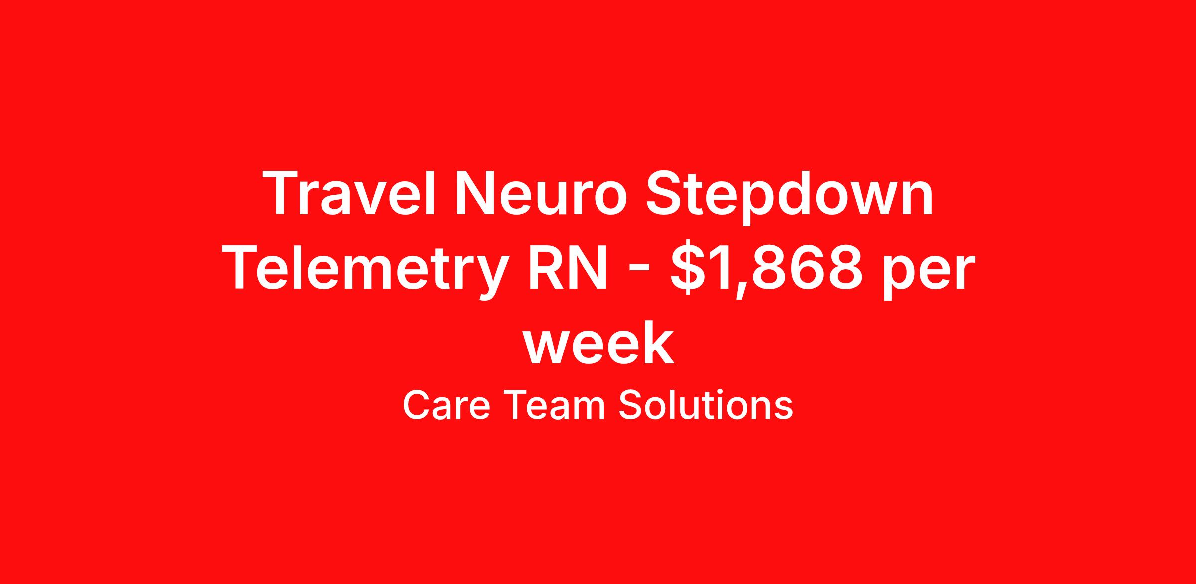 Care Team Solutions is seeking a travel nurse RN Neuro PCU - Progressive Care Unit for a travel nursing job in Jackson, Tennessee. Job Description & Requirements Specialty: Neuro PCU - Progressive Care Unit Discipline: RN Start Date: 03/30/2026 Duration: 13 weeks 36 hours per week Shift: 12 hours Employment Type: Travel Registered Nurse must have 2 years of recent experience in particular specialty Details: Must Have 2 Years of recent Step Down Unit experience. Specialty: Step Down Unit Discipline: Registered Nurse Start Date: 2026-03-30 Duration: 13 Weeks Shift: 12 Hours Overnight shift. Hours Per Week: 36 Hours Employment Type: Contract Gross Weekly Pay: $1867.97 Six things that won’t happen if you apply to this job: You won’t have to guess what the downsides are. We’ll tell you up front. You won’t show up on day 1 and find out this is not what you signed up for. We won't leave your phone call ringing when it's inconvenient. Business hours for you are business hours for us. You won’t get shuffled to some customer service rep when a problem pops up. If we screw up something in securing your placement, we'll own it. That means it's on us to make it right. You won’t figure out your credentials alone. Our credentialing experts will walk you through it step by step. We've talked to thousands of travel nurses like you. We know you want good pay. You want to choose when you work. But the one thing nurse after nurse has said they want and don't have is someone in their corner. There's a lot in this business that’s messed up. We’re trying to be the people that fix it. You and every nurse with the guts to travel deserve it. We've worked hard for you to enjoy some one-of-a-kind benefits you'll not likely find anywhere else, because they benefit you more than they benefit us: Our early pay program Student loan reimbursement Free well-being tele-visits with a psychologist Care Team Solutions Job ID 586217. Pay package is based on 12 hour shifts and 36 hours per week (subject to confirmation) with tax-free stipend amount to be determined. Posted job title: Stepdown Neuro Registered Nurse About Care Team Solutions Two brothers who give an enormous damn. We're Justin and Kyle. Neither of us are nurses. It doesn’t take a nurse to see that the way travel nurses are treated sucks. Nursing is already hard enough. Travel nursing takes serious guts. You get the toughest assignments in places you’ve never been. Which can be fun, but it’s also stressful. You’re in your element but outside of your hometown. You can be a stranger on the team. If anyone deserves someone in their corner, it’s you. But that’s not how most agencies operate. Which is why travel nurses hate working with them. We got into this business because we saw bucket-loads of nurses moving through the "churn and burn" travel machinery. We absolutely hate that. You'll do your best work when you have the placements you want and feel fully supported in your work. We pay our people well because we want them to treat you well. Our recruiters are amazing (we picked each of them ourselves), but if you've got a problem too big for them, they can come straight to us. We work like ten feet away. The "Churners and Burners" promise you the same benefits. They might as well copy/paste them from each other. We have them too: 401k, holiday pay, healthcare, dental, travel reimbursement, etc But we've worked hard for you to enjoy some one-of-a-kind benefits you'll not likely find anywhere else, because they benefit you more than they benefit us: Our early pay program Student loan reimbursement Free well-being tele-visits with a psychologist Benefits Weekly pay Holiday Pay Guaranteed Hours 401k retirement plan Wellness and fitness programs Referral bonus Medical benefits Dental benefits Vision benefits School loan reimbursement