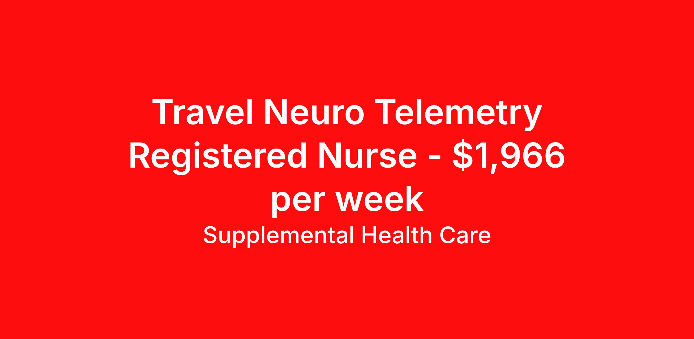 Travel Neuro Telemetry Registered Nurse - $1,966 per week