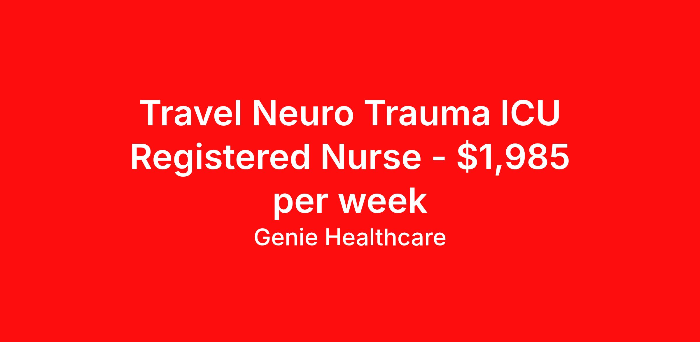 Genie Healthcare is seeking a travel nurse RN Trauma ICU for a travel nursing job in Asheville, North Carolina. Job Description & Requirements Specialty: Trauma ICU Discipline: RN Start Date: 04/13/2026 Duration: 13 weeks 36 hours per week Shift: 12 hours, nights Employment Type: Travel Genie Healthcare is looking for a RN to work in Trauma ICU for a 13 weeks travel assignment located in Asheville, NC for the Shift (3x12 nights, 19:00:00-07:00:00, 12.00-3). Pay and benefits packages are estimated based on client bill rate at time the job was posted. These rates are subject to change. Exact pay and benefits vary based on several things, including, but not limited to, guaranteed hours, client changes in bill rate, experience, etc. Benefits: Medical Insurance, Dental Insurance, Vision Insurance, 401(k) with company matching (50% up to 6% of what you contribute) Genie Healthcare Job ID 17923855. Pay package is based on 12 hour shifts and 36.0 hours per week (subject to confirmation) with tax-free stipend amount to be determined. Posted job title: RN:Trauma ICU,19:00:00-07:00:00 About Genie Healthcare Genie Healthcare is one of the fastest growing Nurse Travel Agencies in the USA. Genie serves hundreds of facilities and has over 4000 current travel RN contracts open at any given time. Genie provides travel RN’s flexibility, support, top pay scale, housing and the 1 rated, multi-state health insurance coverage. Genie Healthcare carries with it a commitment to providing a comprehensive level of service and quality care. Growing from a small team of eager recruiters to a company with satisfied clients in nearly every corner of the nation, delivering excellence in patient and customer care is the key to Genie’s success. The management team has 20 years of experience in workforce solutions and staffing in medical and non-medical fields, roles ranging from Clerical job to Cardiologist to software developer to CEO.