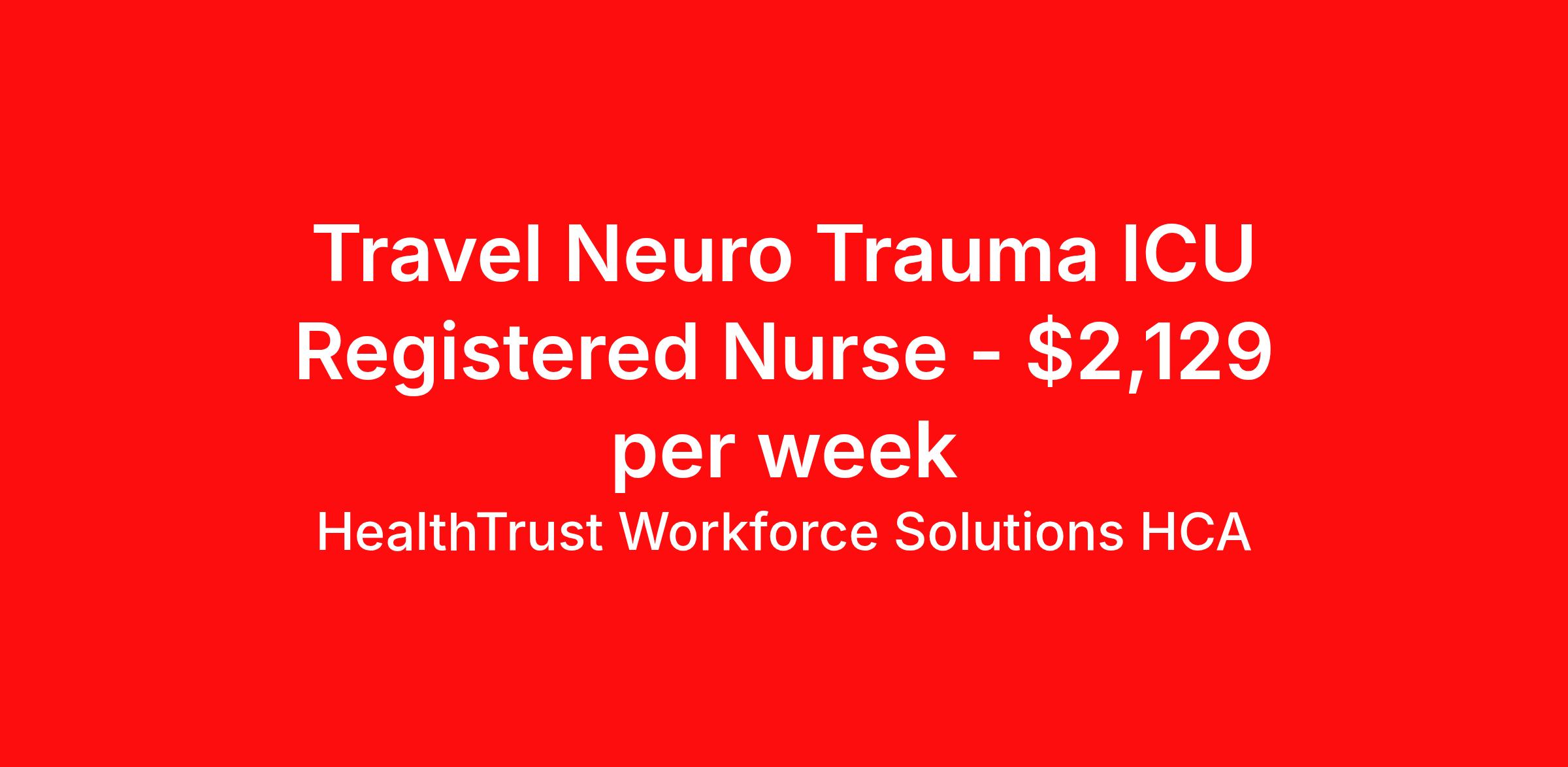 HealthTrust Workforce Solutions HCA is seeking a travel nurse RN ICU - Intensive Care Unit for a travel nursing job in Asheville, North Carolina. Job Description & Requirements Specialty: ICU - Intensive Care Unit Discipline: RN Duration: 13 weeks 36 hours per week Shift: 12 hours, nights Employment Type: Travel Entrust Your Career to HealthTrust! At HealthTrust, we believe that healthcare is not defined by the four walls in which it is practiced; it’s defined by its people. We pride ourselves on crafting opportunities that expand skill sets, broaden career horizons, provide economic stability, and cultivate personal growth. HealthTrust Offers: Competitive Pay Packages Guaranteed hours Weekly direct deposit options 401k with Company Match Earn up to $750 for referrals Free Private Furnished Housing or Tax-Free Subsidy To get started, you will need: RN's a minimum of 1 year in specialty Allied 6 months of experience An adventurous spirit and fierce dedication Degree in corresponding specialty as required Appropriate certifications and licensure as needed for the specific position HealthTrust Benefits: Opportunities for a lifetime: When you become a part of the HCA family, you will have exclusive access to more opportunities than any other healthcare system in the nation. At HWS, we help open the door to a lifetime of lasting career opportunities. A culture of care: Our clinicians have made HWS an industry leader for over 25 years. We are passionate about our mission that, above all else, we are committed to the care and improvement of human life. Career Development: As a wholly owned subsidiary of HCA Healthcare, HWS is a preferred partner to thousands of top-performing hospitals. We provide our healthcare professionals with first-priority access to more than 200,000 jobs nationwide. We are uniquely positioned to offer you exclusive and direct access to HCA Healthcare’s vast network of facilities. Let us open the door to nationwide opportunities that fit your lifestyle! We are an equal opportunity employer and value diversity at our company. We do not discriminate on the basis of race, religion, color, national origin, gender, sexual orientation, age, marital status, veteran status, or disability status. Job Requirements Certifications ACLS (Required) NIHSS (Required) BLS (Required) HealthTrust Workforce Solutions HCA Job ID 982363. Posted job title: Travel Nurse - Critical Care About HealthTrust Workforce Solutions HCA At HealthTrust Workforce Solutions, healthcare is not just about the four walls of a facility but about the people who provide and receive care. Our focus is on empowering healthcare professionals to deliver exceptional patient experiences by providing them with the necessary skills, tools, and support. We partner with healthcare facilities nationwide to ensure that the right professionals are in the right roles. We prioritize our clinicians by giving them a voice and access to opportunities to fulfill their mission of improving lives by providing quality patient care. We are committed to our core values of Trust, Innovation, Adaptability, Courage, and Accountability. We are dedicated to positively impacting the healthcare industry by providing first-priority access to more than 200,000 jobs nationwide to our healthcare professionals. Join us and be part of the HealthTrust family, where you can make a difference every day. We embrace our changing environment, and we maintain a culture that has a rich tradition of transforming itself to meet the challenges of the future. MISSION STATEMENT While putting great people in the right roles is essential, our mission is far greater. We want our clinicians to be part of the HealthTrust family, where healthcare professionals have a voice and are empowered with the right tools and opportunities to fulfill their personal mission of improving lives. Plus, as a preferred partner to thousands of top-performing hospitals, we provide our healthcare professionals with first-priority access to more than 200,000 jobs nationwide. Benefits Dental benefits Vision benefits Referral bonus Continuing Education Life insurance