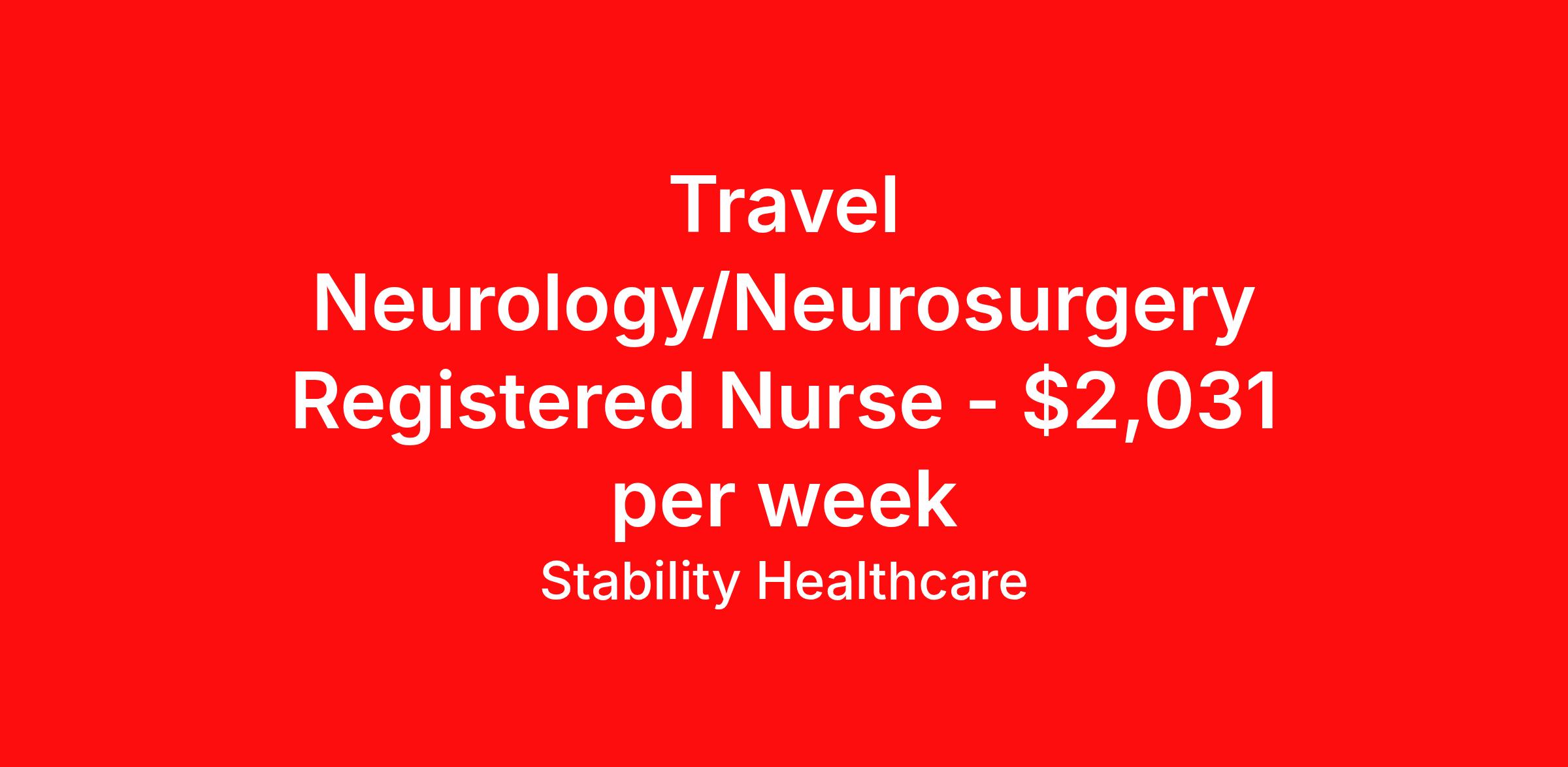 Stability Healthcare is seeking a travel nurse RN Neurology for a travel nursing job in Newburgh, Indiana. Job Description & Requirements Specialty: Neurology Discipline: RN Duration: 13 weeks 36 hours per week Shift: 12 hours, nights Employment Type: Travel Stability Healthcare is looking for a Med-Surg RN contract position in Newburgh, IN. The majority of hospitalized patients are admitted to M/S either directly or after surgery. M/S is also where patients who have been in critical care (ICU) are transferred when they no longer need critical care but still require nursing care. *$600 travel bonus *Day 1 health insurance with United Healthcare *PTO plan start accruing on day 1, use during contract or cash out at the end! *Guaranteed stipend if facility calls you off *Extra hour bonus earn an additional hourly bonus for working over your weekly contracted hours Stability Job ID 807324. Pay package is based on 12 hour shifts and 36 hours per week (subject to confirmation) with tax-free stipend amount to be determined. Posted job title: Med-Surg About Stability Healthcare Stability Healthcare was founded in 2009, with the mission of becoming the best Travel Nursing Agency in California. We have been rated one of the top travel nursing agencies and offer our nurses the highest paying travel nursing jobs available. We have access to the best travel assignments from 1000’s of facilities. You can start the year off in sunny California, spend the Spring in the Colorado Rockies, enjoy the Summer in the Mid-West, experience the change of seasons in Boston and New York, and hit the beaches of Florida in the winter. Our Nurses work in the best hospitals and health systems in the country. Benefits Guaranteed Hours Benefits start day 1
