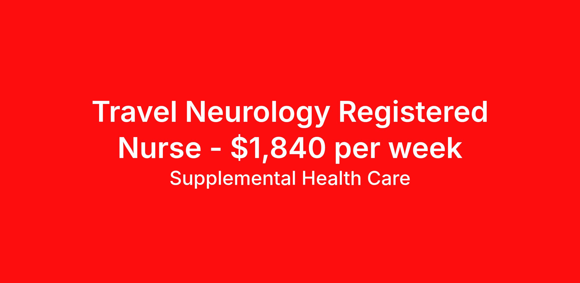 Travel Neurology Registered Nurse - $1,840 per week