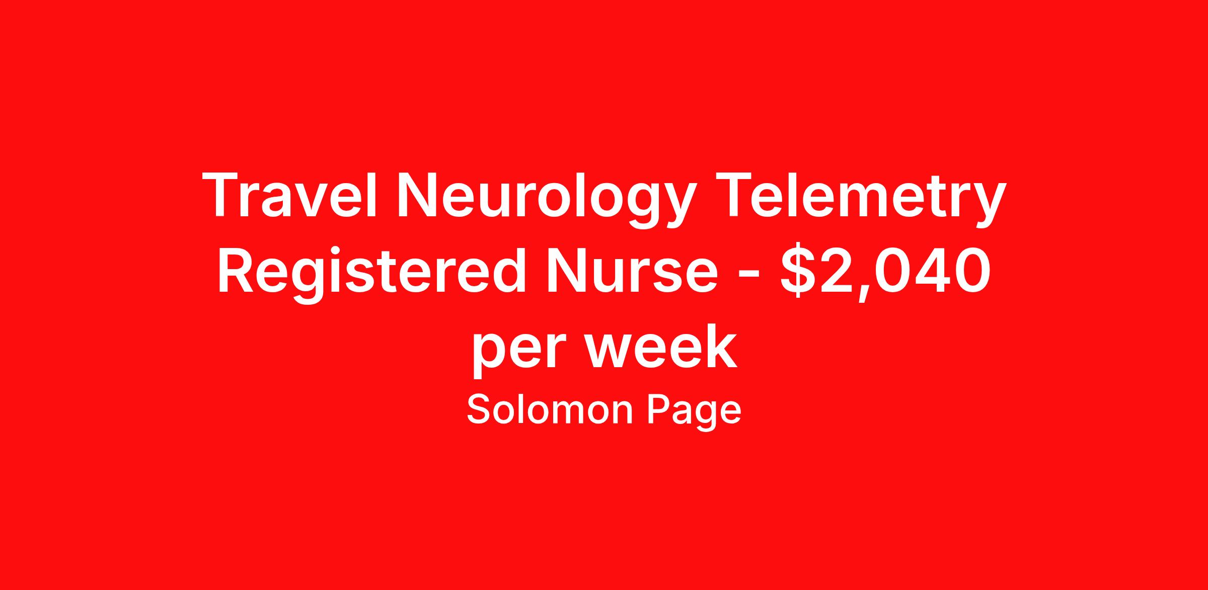 Travel Neurology Telemetry Registered Nurse - $2,040 per week