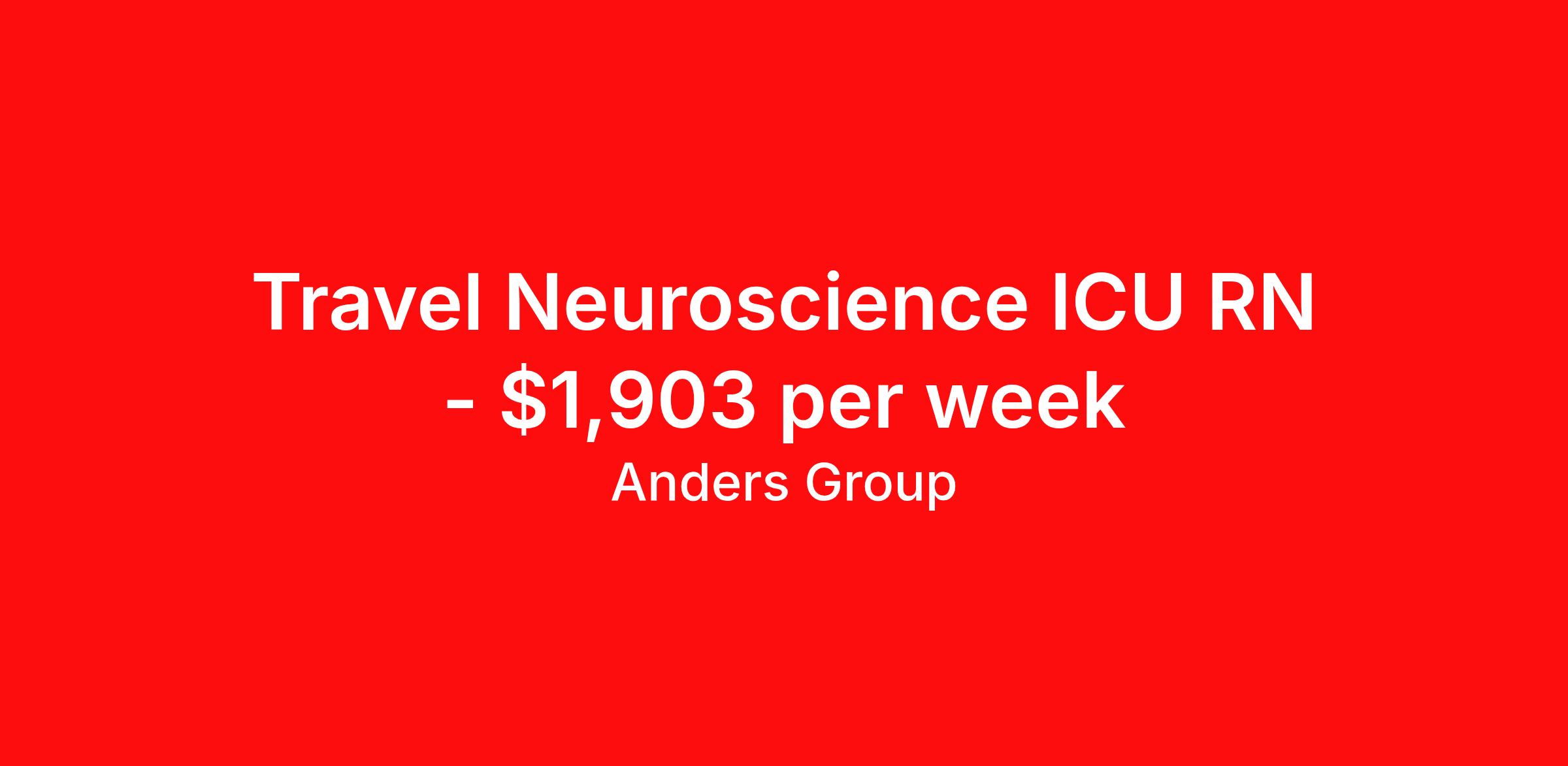 Anders Group is seeking a travel nurse RN ICU - Intensive Care Unit for a travel nursing job in Greenville, North Carolina. Job Description & Requirements Specialty: ICU - Intensive Care Unit Discipline: RN Start Date: ASAP Duration: 13 weeks 36 hours per week Shift: 12 hours Employment Type: Travel Anders Group Job ID 993777. Pay package is based on 12 hour shifts and 36 hours per week (subject to confirmation) with tax-free stipend amount to be determined. Posted job title: Neurosciences ICU RN ICU About Anders Group WHY ANDERS? Anders Group is a Joint Commission accredited staffing agency and stands out from other agencies by our commitment to making sure our travelers are given the best customer service. Our team works hard to find the best jobs with the most aggressive rates! Anders Group offers rewarding assignments and competitive compensation packages, nationwide! We offer the following benefits from day one: Health Insurance, Including a Buy-up Option Dental Insurance Vision Insurance Life Insurance 401(k) Licensure Reimbursement Premium Pay Packages CEU Reimbursements Daily Per Diems Travel Reimbursements Rental Car Allowances Continuing Education Resources Referral Bonus And Many More! THE ANDERS DIFFERENCE You're committed to providing exceptional healthcare. We're committed to you. Anders Group was founded by a team of healthcare recruiters who had built strong relationships with healthcare facilities and professionals nationwide. As staffing firms shifted their focus to numbers and margins, these recruiters saw a need for a company to take a different approach to staffing. Anders Group was founded in 2010 to do just that. We focus on individual and facility goals to make quality placements. Great people working with great facilities make for the best placements. Through our focus on providing the best experience to Allied and Nursing health care professionals, Anders Group has grown to be a top staffing firm in Healthcare. We look forward to working with you! Benefits Medical benefits Dental benefits Vision benefits Life insurance 401k retirement plan License and certification reimbursement Continuing Education Referral bonus