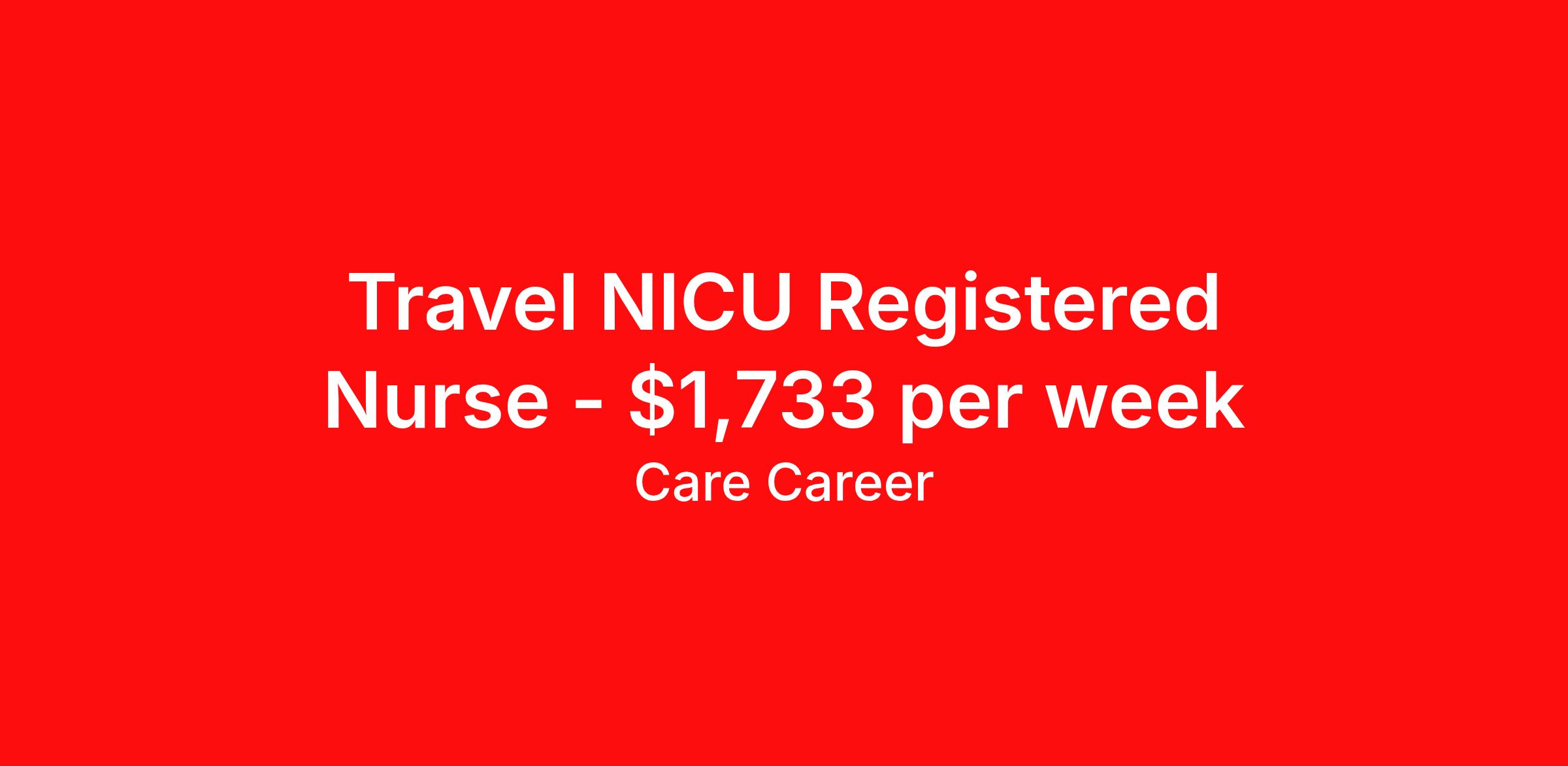 Travel NICU Registered Nurse - $1,733 per week
