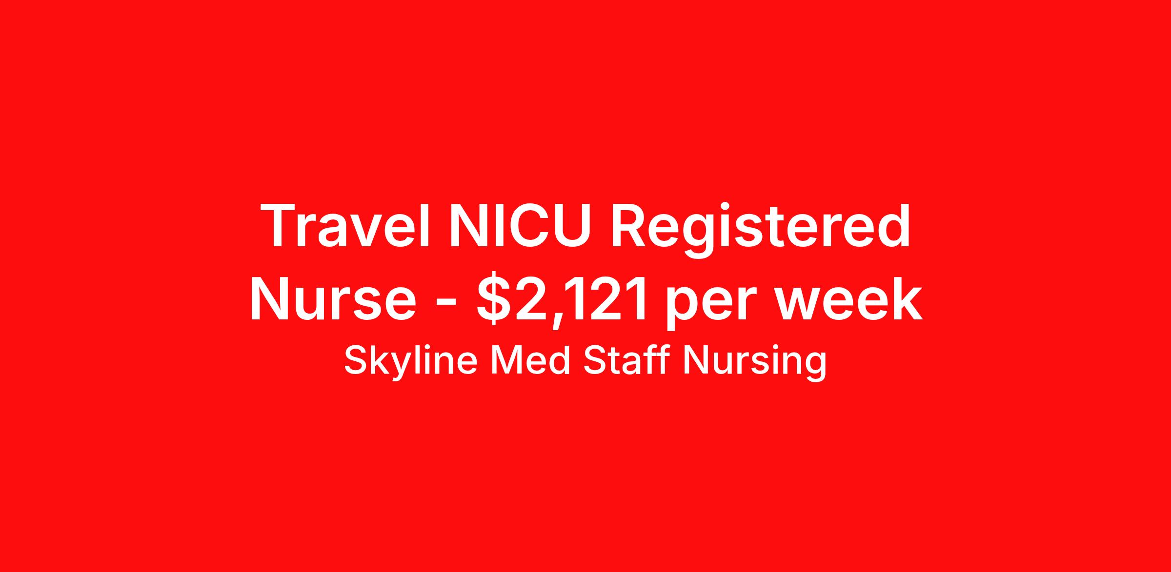 Skyline Med Staff Nursing is seeking a travel nurse RN NICU - Neonatal Intensive Care for a travel nursing job in Madison, Wisconsin. Job Description & Requirements Specialty: NICU - Neonatal Intensive Care Discipline: RN Start Date: 04/06/2026 Duration: 13 weeks 36 hours per week Shift: 12 hours, nights Employment Type: Travel Weekly amount stated in job postings is an estimate based on estimated hourly wage and potential stipends available for the location of the assignment. Pay package is calculated on bill rate at the time job was posted, but can change or vary without notice. Exact pay packages might vary as this is an estimate. Our recruiter would be happy to build an exact pay package for you for each job. Skyline Med Staff Nursing Job ID 36056753. Pay package is based on 12 hour shifts and 36.0 hours per week (subject to confirmation) with tax-free stipend amount to be determined. Posted job title: RN:NICU,19:00:00-07:00:00 About Skyline Med Staff Nursing Join the Top- Rated Travel Healthcare Team! Skyline Med Staff was named as the 1 Best Travel Healthcare Company in 2025 by BluePipes, a recognition driven by glowing reviews from travel healthcare professionals. Our recruiters are consistently praised on Google for their responsiveness, dedication, accessibility, and industry knowledge. Ready to experience the difference? Apply for a job today and see why healthcare professionals choose Skyline! Certified Women Owned Business We believe that travel is good for the soul. We want to be on your journey with you and find the right job that fits you Skyline Med Staff is committed to one vision treating others the way that THEY want to be treated. The executive team at Skyline Med Staff focuses on a commitment to quality, consistency, and the highest level of service. Our team members continually strive to build long term relationships that center on you and helping you achieve your goals. Some of the Benefits you will receive with Skyline Med Staff: Over 30 years of combined experience in the staffing industry Higher Take-Home Pay Rates Dedicated Personal Recruiter We are available to you 24/7 Health Insurance Plan Options Tax Free Per Diems, Housing Stipends and Travel Reimbursements Joint Commission Certified Contracts in all 50 states Referral and Loyalty Bonuses Benefits Medical benefits Referral bonus