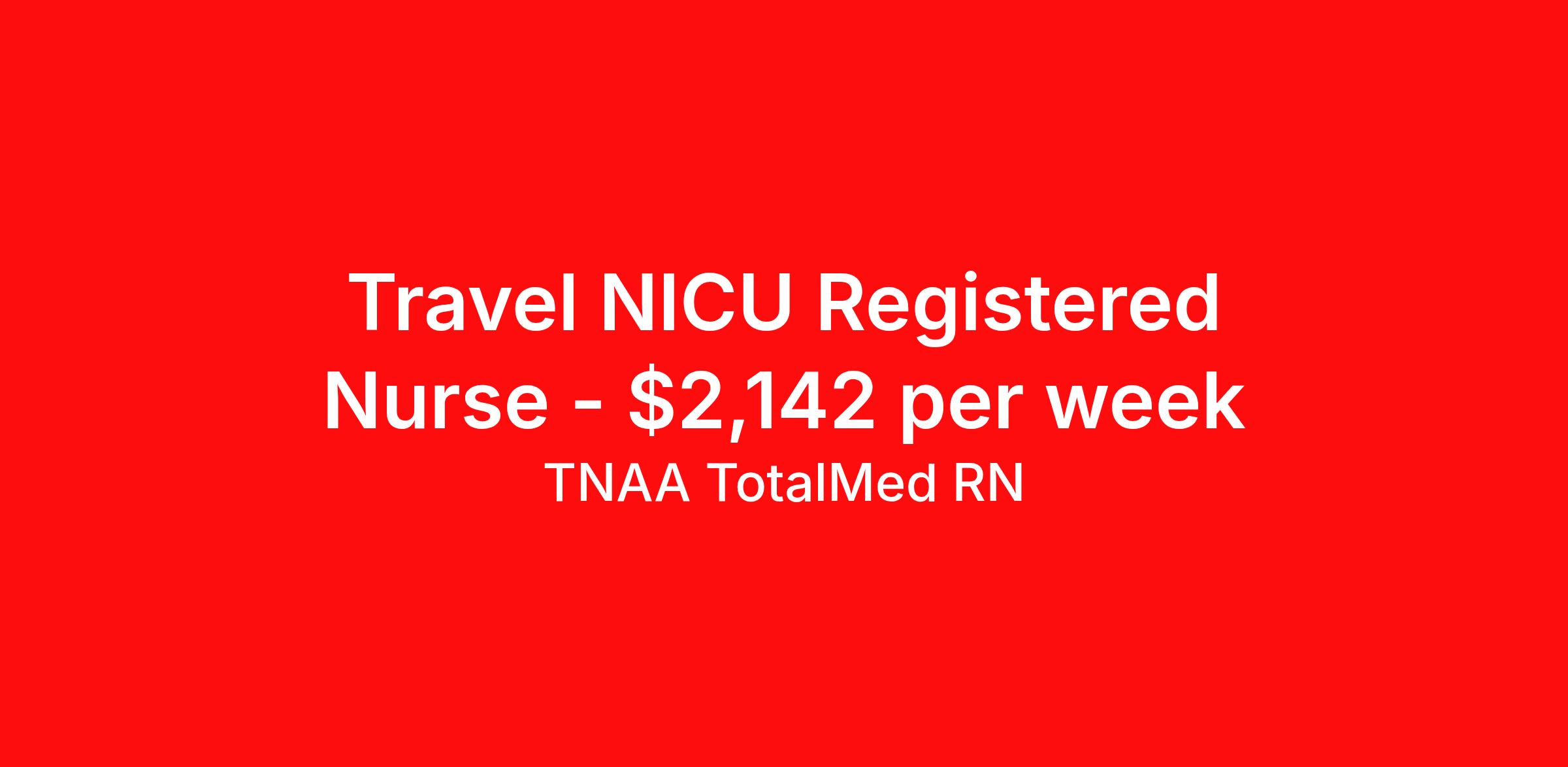 TNAA TotalMed RN is seeking a travel nurse RN NICU - Neonatal Intensive Care for a travel nursing job in Columbus, Ohio. Job Description & Requirements Specialty: NICU - Neonatal Intensive Care Discipline: RN Start Date: 05/04/2026 Duration: 13 weeks 36 hours per week Shift: 12 hours, nights Employment Type: Travel We're looking for Neonatal Intensive Care Unit RNs for an immediate travel nurse opening in Columbus, OH. The right RN should have 1-2 years' recent acute care experience. Read below for more requirements. As a NICU RN, you'll provide critical care to sick and premature infants. Alongside the rest of the care team, NICU RNs assist in providing round-the-clock care to these patients and support to the parents. Parental support can range from emotional encouragement to advising parents on the proper care of their infant when they return home. As a NICU Travel Nurse, you should be prepared to perform the following tasks: Care for infants transitioning to extra uterine life. Monitor vital signs and initiate corrective action when necessary. Provide nutritional assessment and specialized feedings. Change dressings, insert catheters, start IVs. Provide arterial and intravenous therapy. Monitor and adjust specialized equipment used on patients, such as incubators and ventilators. NICU Travel Nurses should be able to stand and walk for long periods of time, as well as bend, lean and stoop without difficulty. RNs should be able to easily lift 10-20 pounds of equipment at times. NICU Travel Nurses may face hazards from exposure to chemicals and infectious diseases. Requirements*: BLS, NRP, 1 Year * Additional certifications may be required before beginning an assignment. TotalMed Travel Job ID 1394439. Pay package is based on 12 hour shifts and 36 hours per week (subject to confirmation) with tax-free stipend amount to be determined. Posted job title: Neonatal Intensive Care Unit - NICU RN - Travel Nurse About TNAA TotalMed RN TotalMed is a Top Ten, travel nursing and healthcare staffing agency with the mission of igniting purpose in healthcare. The organization staffs nurses, therapists, pharmacists, and other clinicians of all specialties in all 50 states. They offer local and travel jobs and match caregivers with the right organization to assist both facilities and patients. As an organization, they focus on putting highly-skilled staff into facilities to ensure adequate staffing for a better patient experience. TotalMed specializes in recruiting and placing healthcare professionals in travel, PRN, and permanent positions across the country in Nursing and Allied Health. Throughout 2020, the organization filled roles at even the most short-staffed facilities during the most challenging time in healthcare. By matching the right travel healthcare professional with the right organization, TotalMed continues to offer a lifeline to facilities and their patients. Benefits Weekly pay Guaranteed Hours Continuing Education 401k retirement plan Sick pay Wellness and fitness programs Referral bonus Employee assistance programs Medical benefits Dental benefits Vision benefits Benefits start day 1