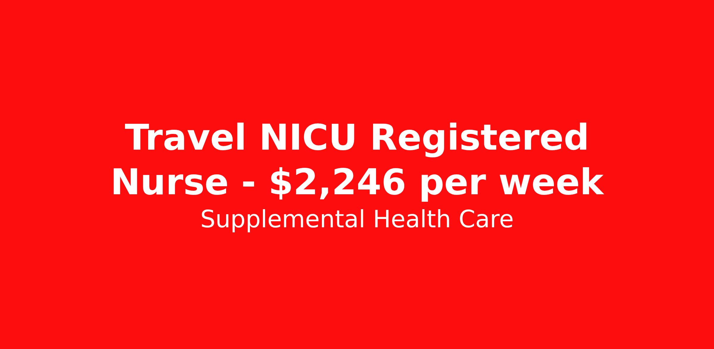 Supplemental Health Care is seeking a travel nurse RN NICU - Neonatal Intensive Care for a travel nursing job in Hartford, Connecticut. Job Description & Requirements Specialty: NICU - Neonatal Intensive Care Discipline: RN Start Date: ASAP Duration: 13 weeks 36 hours per week Shift: 12 hours, days, nights Employment Type: Travel Job Description: Supplemental Health Care is hiring NICU RNs for contract assignments at partnering hospitals in Hartford, Connecticut. Whether you’re looking to travel or stay local, we’re committed to helping Neonatal Intensive Care Unit Registered Nurses find the right fit with top hospitals across the country. With more than 40 years of experience in healthcare staffing, Supplemental Health Care offers reliable support, competitive pay, and great benefits every step of the way. Qualifications: Connecticut RN License or Compact State RN License American Heart Association BLS NRP or NALS 2 years of recent Neonatal Intensive Care Unit experience PALS certification is preferred NICU RN Contract Details: $1,998 - $2,246 per week* AM shift available 13-week contract with possibility to extend Provide neonatal care for pediatric patients Provide care for neonatal patients recovering from complex surgery or treatments and may be on medication drips, ventilator, central lines, arterial lines, CVP, or foleys Monitor patient vitals and telemetry strips and intervene as necessary *Estimated weekly payment may include both taxable wages and tax-free reimbursements for meals, housing, and incidentals. Please speak with a recruiter for details. Apply today to get started with this NICU RN contract opportunity, or talk to our team about the full range of Registered Nurse opportunities available. What We Offer: Full medical, dental, vision, life, and even pet insurance! Round the clock support. No matter where you are or what time it is, Supplemental Health Care is standing by. SHC's Share the Care referral program is the most dynamic, profitable referral program in the industry. 401(k) Retirement Savings Program with a wide range of investment options. Discounted and free online access to CEU courses through Supplemental University. Supplemental Health Care is an Equal Opportunity Employer. All candidates, including veterans and those with disabilities, are encouraged to apply. SHC will consider for employment qualified applicants with criminal histories in a manner consistent with the requirements of applicable local, state, or federal law. To learn more, visit www.shccares.com/eeo Supplemental Health Care Job ID 1487955. Pay package is based on 12 hour shifts and 36 hours per week (subject to confirmation) with tax-free stipend amount to be determined. Posted job title: NICU RN - Registered Nurse About Supplemental Health Care At Supplemental Health Care, a simple belief in the power of caring guides a unique commitment to world-class service in healthcare staffing. For 40 years, we’ve supported talented professionals pursuing their life calling in hospitals, schools, home health, corrections, behavioral health, and other settings. At SHC, we inspire vital connections and enrich lives and inspire better outcomes. As recipients of the Best in Staffing Awards for both Client and Talent, Supplemental Health Care is proud to be among only 2% of staffing companies singled out for the distinction based on the real feedback of our employees and the clients we serve. SHC has also earned The Joint Commission’s Gold Seal of Approval and is named among the Largest Health Care Staffing companies in the United States by Staffing Industry Analysts. We are also thrilled to recognize our very own SLP, Dr. Kelly Byrd as the American Staffing Association 2024 National Staffing Employee of the Year and Health Care Sector All-Star. We’re honored to connect Dr. Byrd to employment, share her incredible story, and support her family literacy nonprofit. For everyone that we serve, SHC is the place where caring hearts thrive. Benefits Referral bonus Benefits start day 1 401k retirement plan Continuing Education Discount program Health savings account