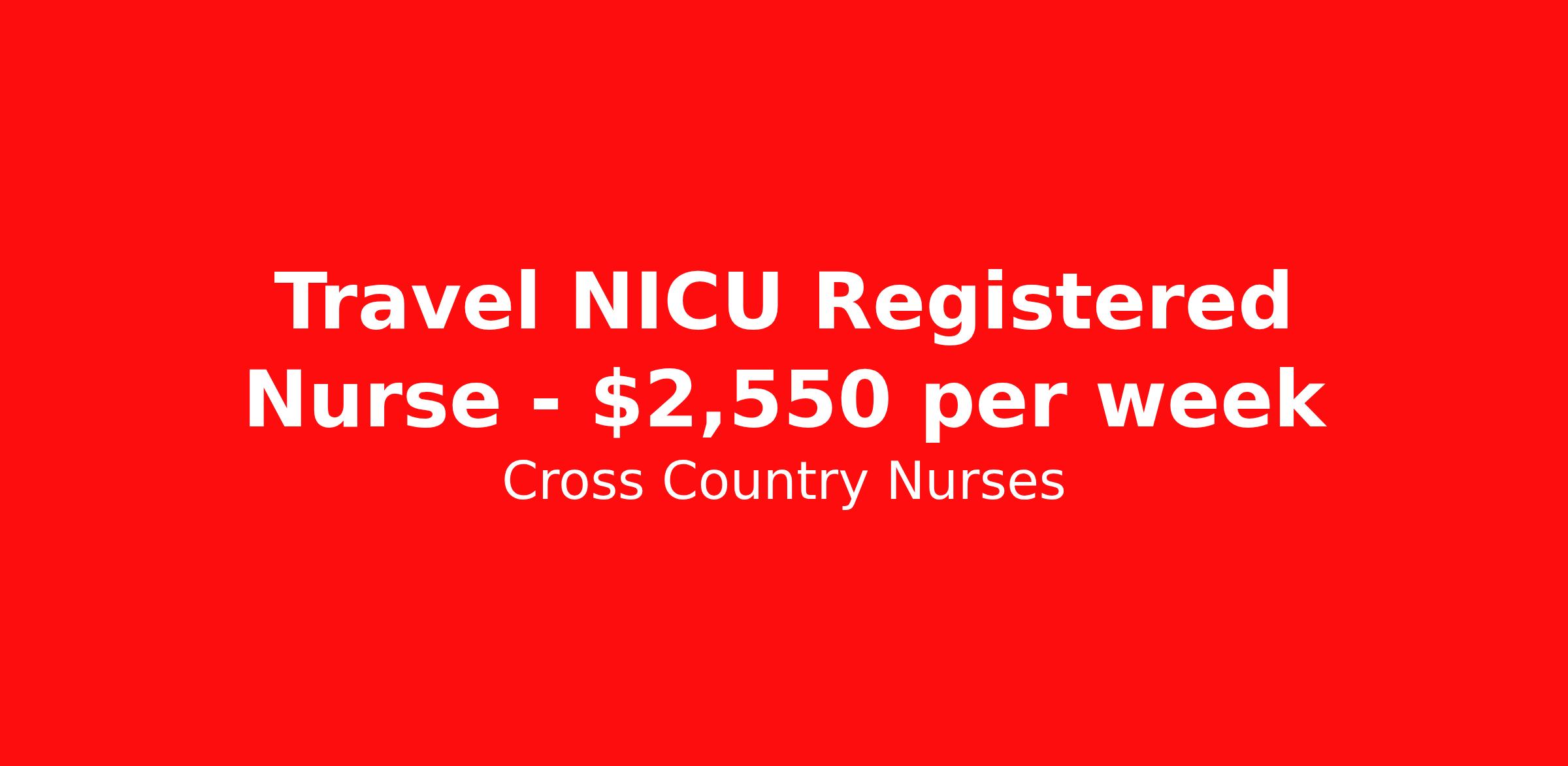 Cross Country Nurses is seeking a travel nurse RN NICU - Neonatal Intensive Care for a travel nursing job in Maplewood, Minnesota. Job Description & Requirements Specialty: NICU - Neonatal Intensive Care Discipline: RN Start Date: 04/06/2026 Duration: 13 weeks 36 hours per week Shift: 12 hours, nights Employment Type: Travel Job Description As a neonatal nurse (RN NICU), you will care for premature and critically ill newborns. This will include infants with premature congenital disabilities, dangerous infections and other problems from birth until they are discharged. In addition to attending deliveries, you will be helping to formulate care plans for treatment and participate in complex medical and technical procedures. You will be a liaison with other members of the healthcare team and will teach parents about their baby's condition, breastfeeding and help with other concerns they may have. Minimum Requirements At least 1 year of recent acute care experience in specialty Active RN license Benefits The benefits of taking a travel nursing job with Cross Country include: Private housing or generous housing allowance Comprehensive health insurance with prescription coverage Dependent health insurance with prescription coverage Competitive salaries Referral bonuses Travel reimbursement 401(k) retirement plan Direct deposit/free checking Unlimited free CE credits Cross Country Job ID 1231248. Pay package is based on 12 hour shifts and 36 hours per week (subject to confirmation) with tax-free stipend amount to be determined. Posted job title: Registered Nurse / Neonatal Intensive Care Unit About Cross Country Nurses You care for others — we’re here to care for you. At Cross Country, we know travel nursing is about more than just the job. It’s about building a career that supports your lifestyle, your values, and your impact. We offer competitive pay, full benefits, and 24/7 support from a team that truly understands what it means to be on the front lines. Wherever your journey takes you, we’re with you every step of the way. Let’s build your best life — one assignment at a time. Benefits 401k retirement plan Referral bonus