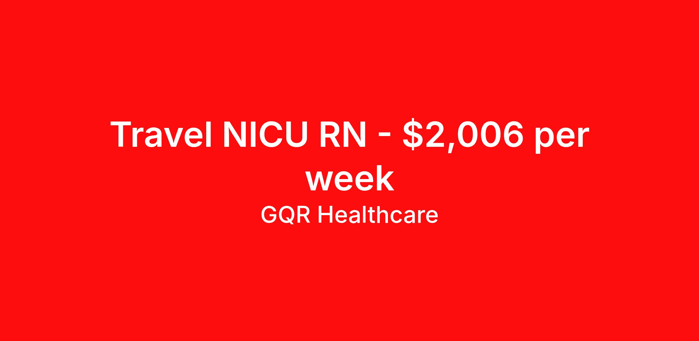 GQR Healthcare is seeking a travel nurse RN NICU - Neonatal Intensive Care for a travel nursing job in Lynwood, California. Job Description & Requirements Specialty: NICU - Neonatal Intensive Care Discipline: RN Start Date: ASAP Duration: 52 weeks 36 hours per week Shift: 12 hours, days Employment Type: Travel Contract - W2 Neonatal Intensive Care (NICU) Registered Nurse (RN) Job Location: Lynwood, California Start Date: March 16, 2026 Profession: Registered Nurse (RN) Facility: Estimated Pay: $2006.47 - $2101.4700000000003 Duration:52 weeks Specialty:Neonatal Intensive Care (NICU) Shift: Day Shift Details: null Day Job Type: Travel *Estimated weekly pay includes projected hourly wages and weekly meal and lodging per diems for eligible clinicians based on nationally published GSA rates. Actual weekly pay and per diems may differ from the amount shown and are subject to change during an assignment. Benefits: Day 1 Insurance Cigna medical, MetLife dental and vision insurance License reimbursement for new licenses needed for each assignment Discounts with hotels and rental cars A dedicated recruiter and support team that will help you every step of the way to sure you start on time and have an exceptional experience Referral bonus up to $700 About the Company: Finding the right role is about more than just matching skills to a job—it’s about aligning with your goals, values, and the way you want to work. As an award-winning talent partner, we support healthcare professionals through every step of that process, offering meaningful opportunities, clear guidance, and long-term partnership. From our first conversation to your first day on the job (and beyond!), we’re here to help you move forward with confidence. GQR Job ID 785725. Pay package is based on 12 hour shifts and 36 hours per week (subject to confirmation) with tax-free stipend amount to be determined. Posted job title: Registered Nurse (RN) About GQR Healthcare GQR’s Healthcare team specializes in connecting experts within the industry to highly skilled healthcare professionals across the US market. In the competitive healthcare market, we recognize that the industry’s common goals of improved quality of care and patient outcomes are wholly reliant upon the professionals directly supporting these initiatives. Leveraging our extensive candidate network, we deliver continuity of care for the communities our partners serve to ensure the patient experience is of the highest quality. Through deep market specialization and a unique approach to talent acquisition, GQR Healthcare provides an unparalleled and personalized experience across all medical specialties in nursing and within diverse healthcare platforms across the industry.