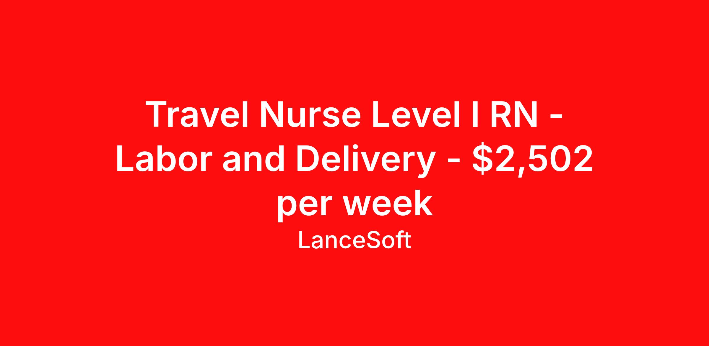 Travel Nurse Level I RN - Labor and Delivery - $2,502 per week