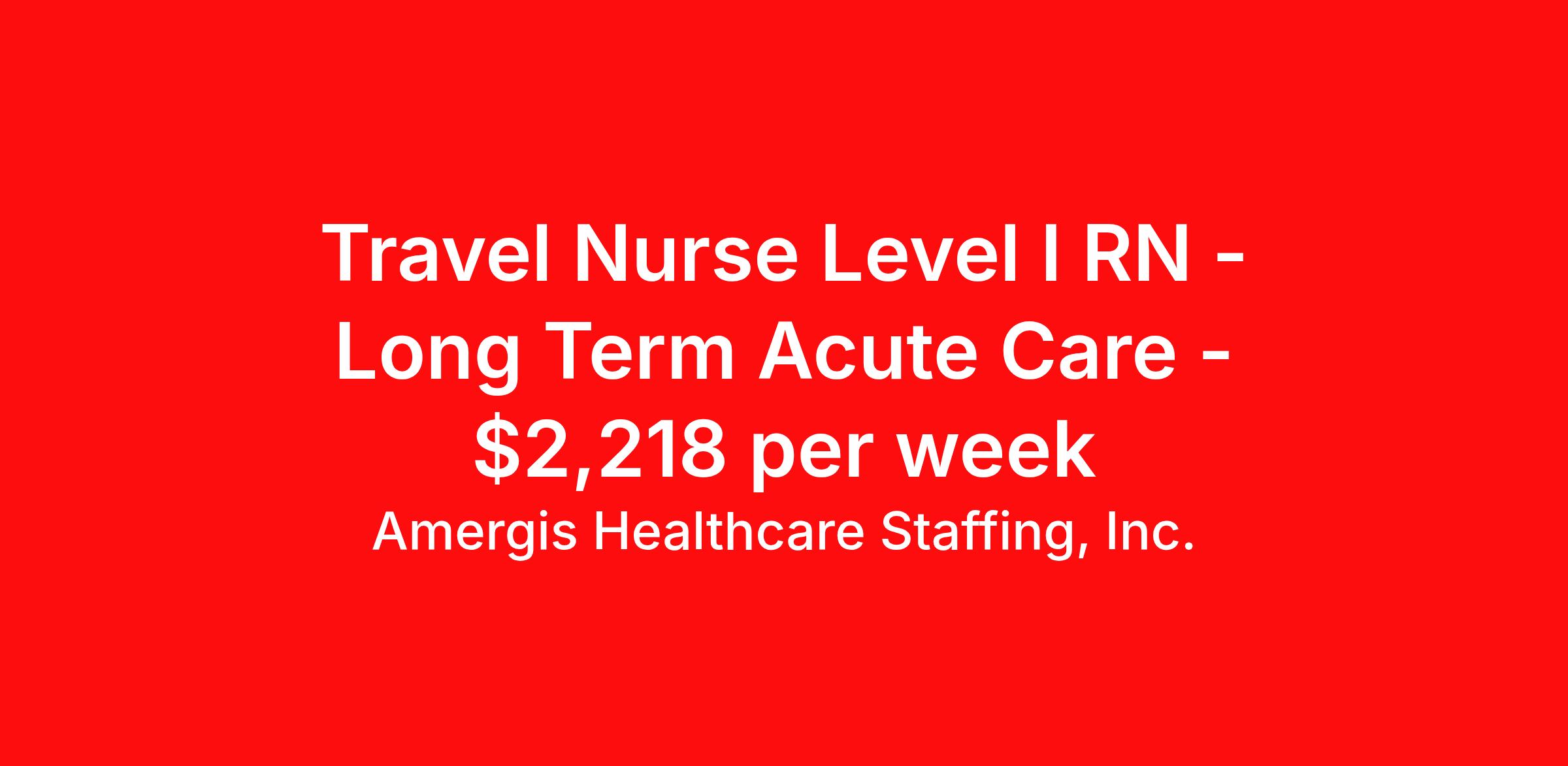Amergis Healthcare Staffing, Inc. is seeking a travel nurse RN Long Term Acute Care Level I for a travel nursing job in Springfield, Missouri. Job Description & Requirements Specialty: Long Term Acute Care Discipline: RN Duration: 13 weeks 36 hours per week Shift: 12 hours Employment Type: Travel The Long-Term Acute Care Registered Nurse provides planning and delivery of direct and indirect patient care to medically complex patients in long-term acute settings. Minimum Requirements: Current RN license for the state in which the nurse practices in One (1) year nursing experience in a long-term acute care facility preferred Experience in acute rehabilitation for vents, wound care, cardiac, and stable post trauma patients Current CPR if applicable TB questionnaire, PPD or chest x-ray if applicable Current Health certificate (per contract or state regulation) Must meet all federal, state and local requirements Must be at least 18 years of age Benefits At Amergis, we firmly believe that our employees are the heartbeat of our organization and we are happy to offer the following benefits: Competitive pay & weekly paychecks Health, dental, vision, and life insurance 401(k) savings plan Awards and recognition programs *Benefit eligibility is dependent on employment status. About Amergis Amergis, formerly known as Maxim Healthcare Staffing, has served our clients and communities by connecting people to the work that matters since 1988. We provide meaningful opportunities to our extensive network of healthcare and school-based professionals, ready to work in any hospital, government facility, or school. Through partnership and innovation, Amergis creates unmatched staffing experiences to deliver the best workforce solutions. Amergis is an equal opportunity/affirmative action employer. All qualified applicants will receive consideration for employment without regard to sex, gender identity, sexual orientation, race, color, religion, national origin, disability, protected Veteran status, age, or any other characteristic protected by law. Amergis Job ID 1103923. Pay package is based on 12 hour shifts and 36 hours per week (subject to confirmation) with tax-free stipend amount to be determined. Posted job title: RN Long Term Acute Care LTAC I 36 Hrs - Springfiel About Amergis Healthcare Staffing, Inc. Amergis, formerly known as Maxim Healthcare Staffing, has served our clients and communities by connecting people to the work that matters since 1988. We provide meaningful opportunities to our extensive network of healthcare and school-based professionals, ready to work in any hospital, government facility, or school. Through partnership and innovation, Amergis creates unmatched staffing experiences to deliver the best workforce solutions.