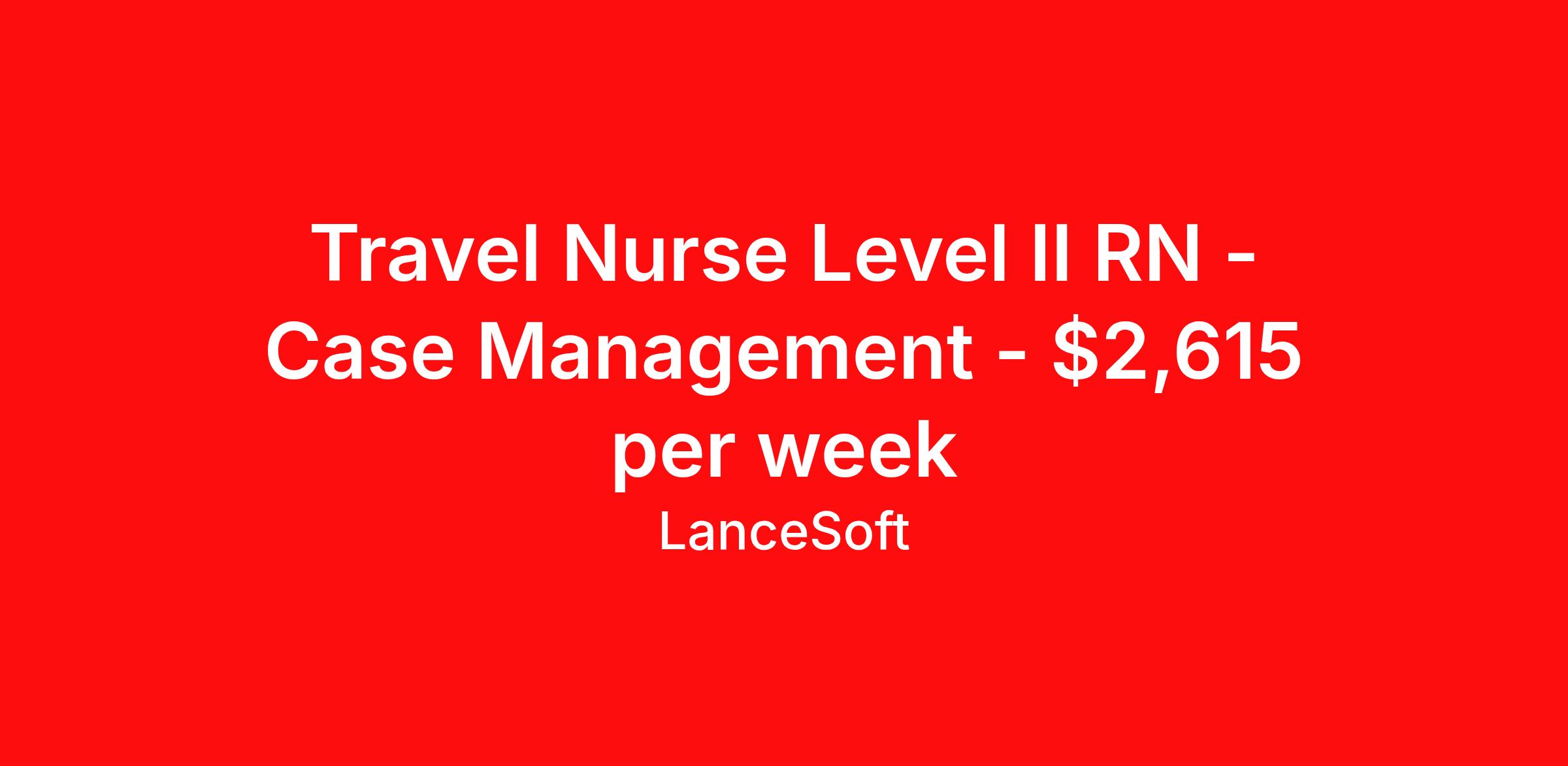 Travel Nurse Level II RN - Case Management - $2,615 per week
