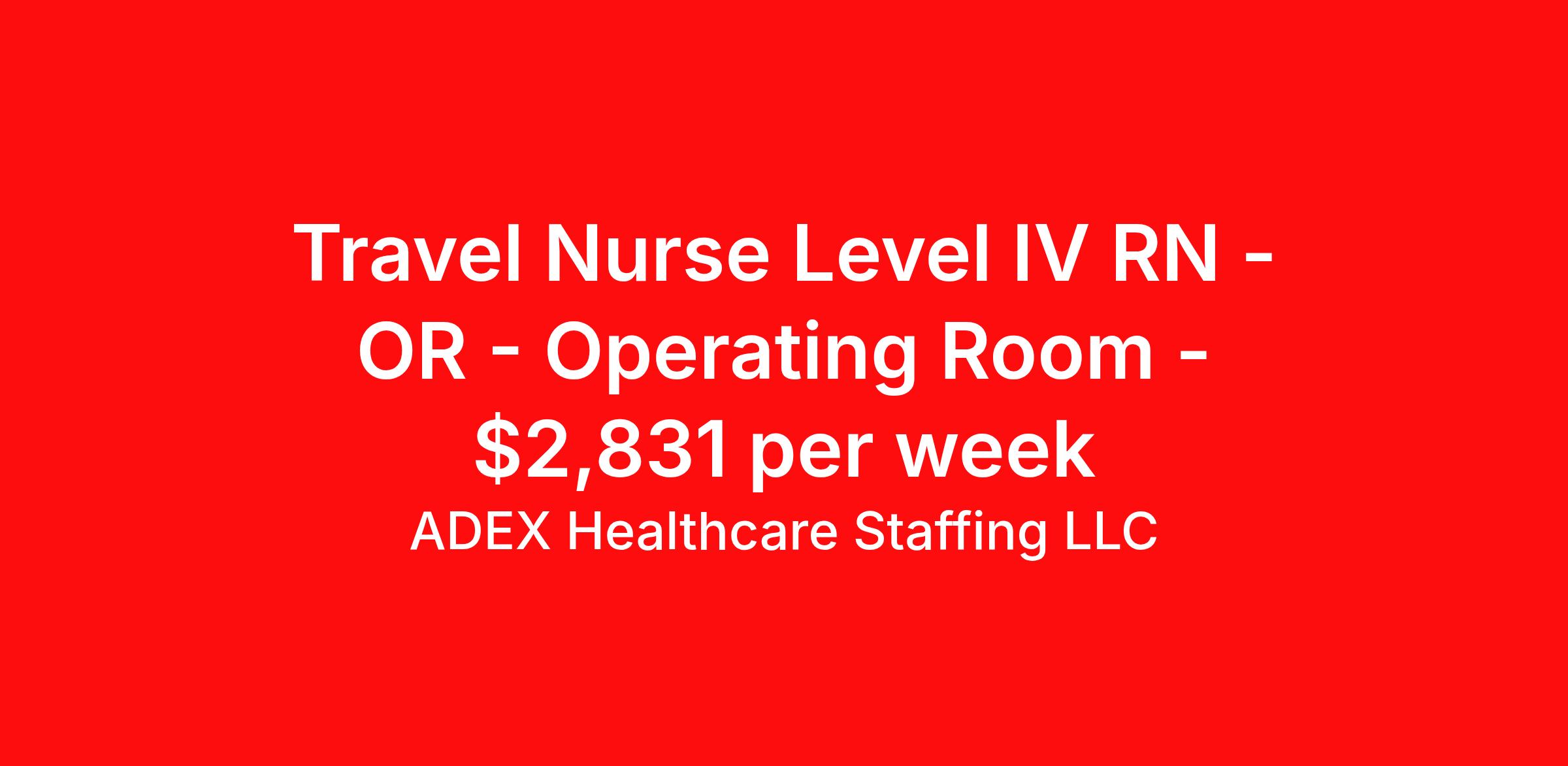 ADEX Healthcare Staffing LLC is seeking a travel nurse RN OR - Operating Room Level IV for a travel nursing job in Rochester, New York. Job Description & Requirements Specialty: OR - Operating Room Discipline: RN Start Date: 04/13/2026 Duration: 13 weeks 36 hours per week Shift: 12 hours Employment Type: Travel RN Position Job Notes: Travel or Local Registered Nurse needed for ASAP start. A minimum of 2 years of recent hospital bedside experience is required. Candidates must be able to start within 5 weeks. Opportunity for extension upon successful completion of the initial assignment. $750 referral bonus available. Opportunity: RN - Circulator OR Job Details: • Work 12-hour day shifts from 7:00 AM to 7:00 PM • Focus on cardiac operating room procedures • Independently scrub and circulate complex adult cardiac cases • Handle CABGs, structural heart cases (Bentall), minimally invasive procedures (Mini Aortic Valve Replacement), and heart failure cases (Impella) • Care for patients undergoing TAVIs, VAD procedures, ECMO, artificial heart implantation, and heart transplants • Use multidisciplinary approach to care for patients of all ages • Two years of experience required • Operating room experience in a level 1 trauma center preferred • Must be able to circulate operating room procedures • Transplant and TAVI/TAVR experience preferred but not required • New York RN license required • Required certifications: BLS and ACLS (American Heart Association only) Facility: This major academic medical center operates a comprehensive adult cardiac operating room that provides advanced cardiovascular surgical services. The facility specializes in complex cardiac procedures and heart failure treatments, maintaining a multidisciplinary approach to patient care. The cardiac OR team handles a wide variety of cases from routine bypass surgeries to advanced heart transplants and mechanical circulatory support devices, representing one of the region's leading cardiac surgery programs. Location: Rochester, NY Rochester offers a vibrant blend of cultural attractions, educational institutions, and outdoor recreation opportunities in western New York. The city provides an excellent quality of life with affordable living costs, numerous parks and recreational facilities, and proximity to the Finger Lakes region for year-round outdoor activities. Adex Job ID 798239. Pay package is based on 12 hour shifts and 36 hours per week (subject to confirmation) with tax-free stipend amount to be determined. About ADEX Healthcare Staffing LLC ADEX has been placing healthcare professionals across the US since 2004. Originally founded in Atlanta, GA, the company's headquarters are now located in Tampa, FL. JCAHO certified since 2009. Benefits Referral bonus