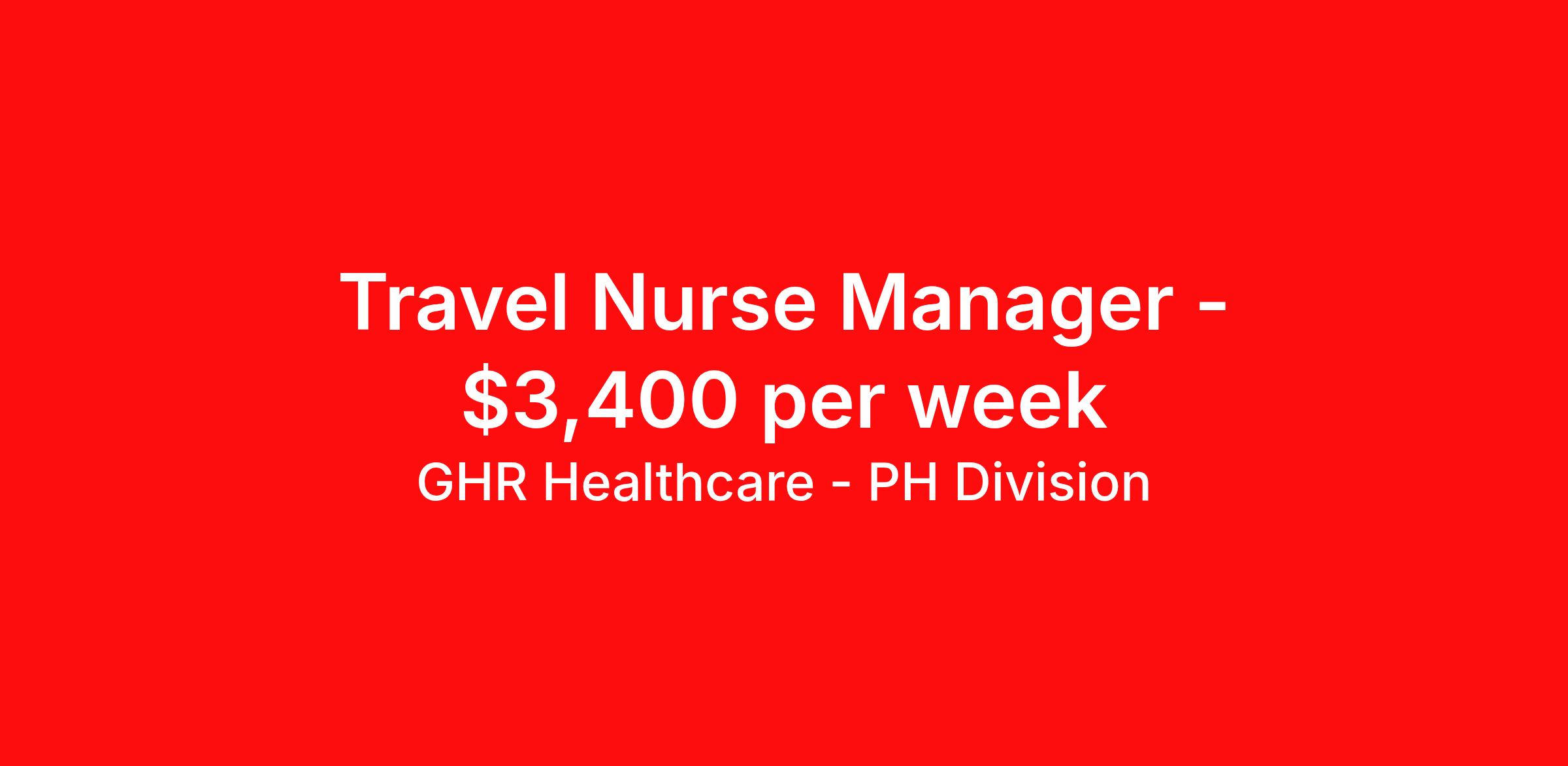 GHR Healthcare - PH Division is seeking a travel nurse RN Manager for a travel nursing job in East Sandwich, Massachusetts. Job Description & Requirements Specialty: Manager Discipline: RN Start Date: 04/20/2026 Duration: 12 weeks 40 hours per week Shift: 8 hours Employment Type: Travel Planet Healthcare Job ID 76339004. Pay package is based on 8 hour shifts and 40 hours per week (subject to confirmation) with tax-free stipend amount to be determined. About GHR Healthcare - PH Division For over 30 years, GHR Healthcare has been the bridge between healthcare professionals and the facilities that need them nationwide. We're committed to uncovering your ideal fit, supported by GHR's dedication to competitive compensation, transparent communication, and a devoted team that genuinely cares about your career journey. You can trust us to stand by your side as your advocate, confidante, and partner in advancing your career. At GHR, care and consideration are at the heart of everything we do. Visit ghrhealthcare.com to learn more.