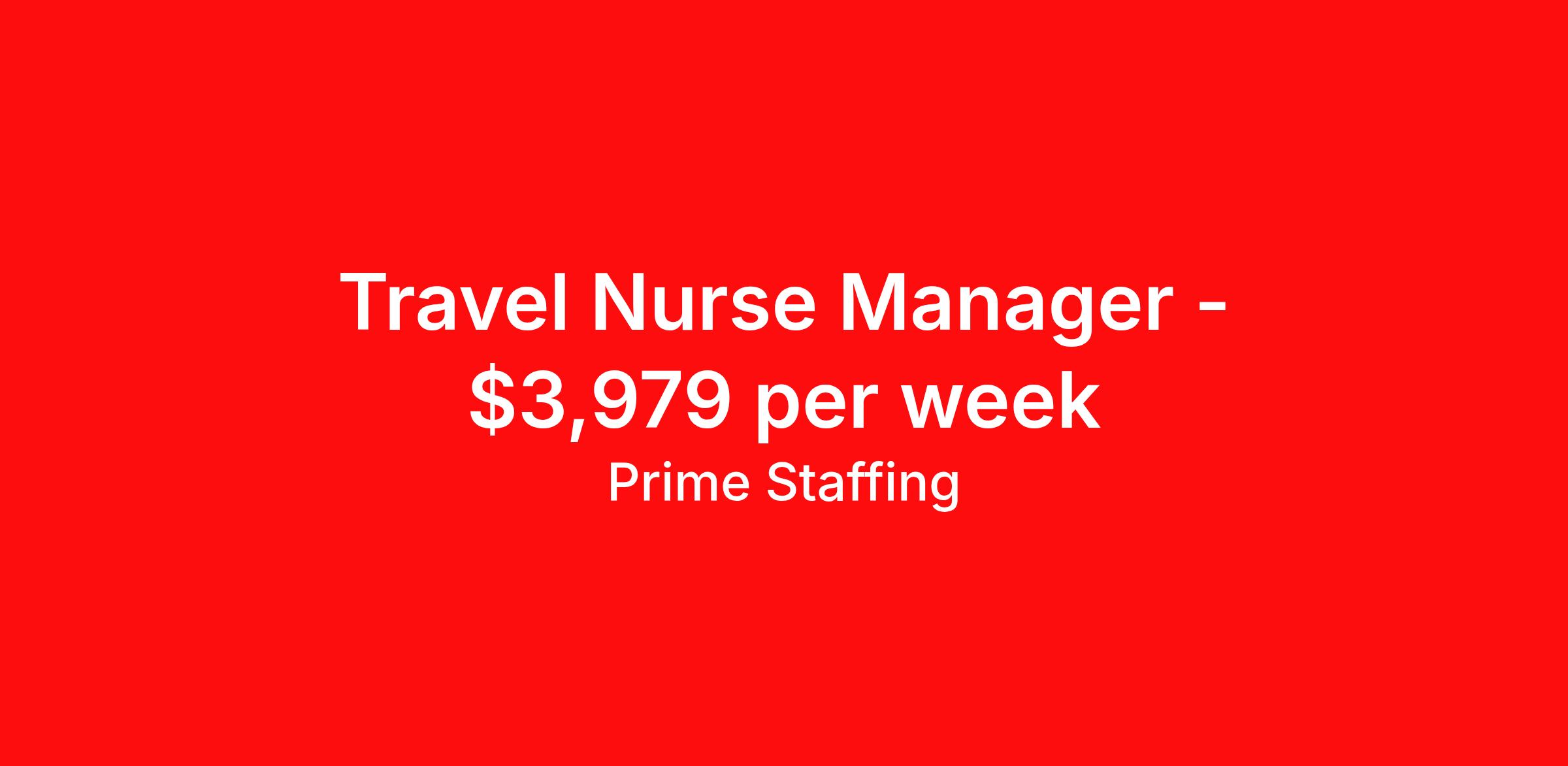 Prime Staffing is seeking a travel nurse RN Manager for a travel nursing job in Brooklyn, New York. Job Description & Requirements Specialty: Manager Discipline: RN Start Date: ASAP Duration: 14 weeks 40 hours per week Shift: 8 hours Employment Type: Travel About the Position Specialty: RN – Nurse Manager Experience: 2–3 years of clinical leadership experience required License: Active State or Compact RN License Certifications: BLS – AHA (other certifications may be required based on unit) Must-Have: Strong leadership, critical thinking, and team coordination skills Description: The Nurse Manager is responsible for overseeing daily nursing operations within a designated unit. This includes supervising nursing staff, coordinating patient care, managing budgets and schedules, and ensuring compliance with healthcare standards. Works collaboratively with interdisciplinary teams to enhance quality outcomes and staff performance. Requirements Required for Onboarding: Active RN License BLS Prime Staffing Job ID 35953630. Pay package is based on 8 hour shifts and 40.0 hours per week (subject to confirmation) with tax-free stipend amount to be determined. Posted job title: RN:Nurse Manager,08:00:00-16:00:00 About Prime Staffing At Prime Staffing, we understand the importance of finding the perfect fit for both our clients and candidates. Prime Staffing utilizes a unique matchmaking approach, providing the most qualified contingent staffing to our clients, and the most competitive contracts to our workforce. Our experienced team takes the time to get to know both our clients and candidates, their needs, and preferences, to ensure that each placement is a success. We offer a wide range of staffing services including temporary, temp-to-perm, and direct hire placements. Our extensive network of qualified candidates includes nurses, allied healthcare professionals, corporate support professionals and executives.