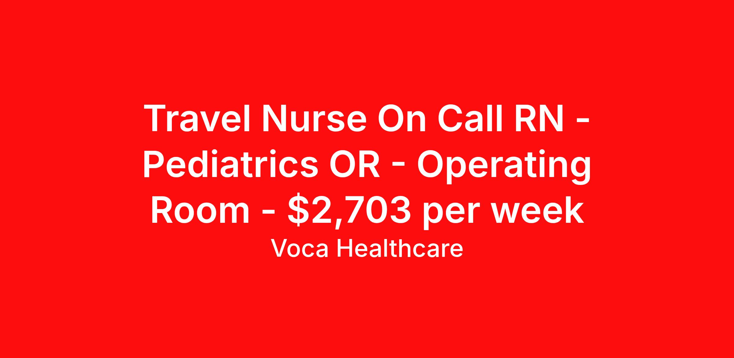 Travel Nurse On Call RN - Pediatrics OR - Operating Room - $2,703 per week