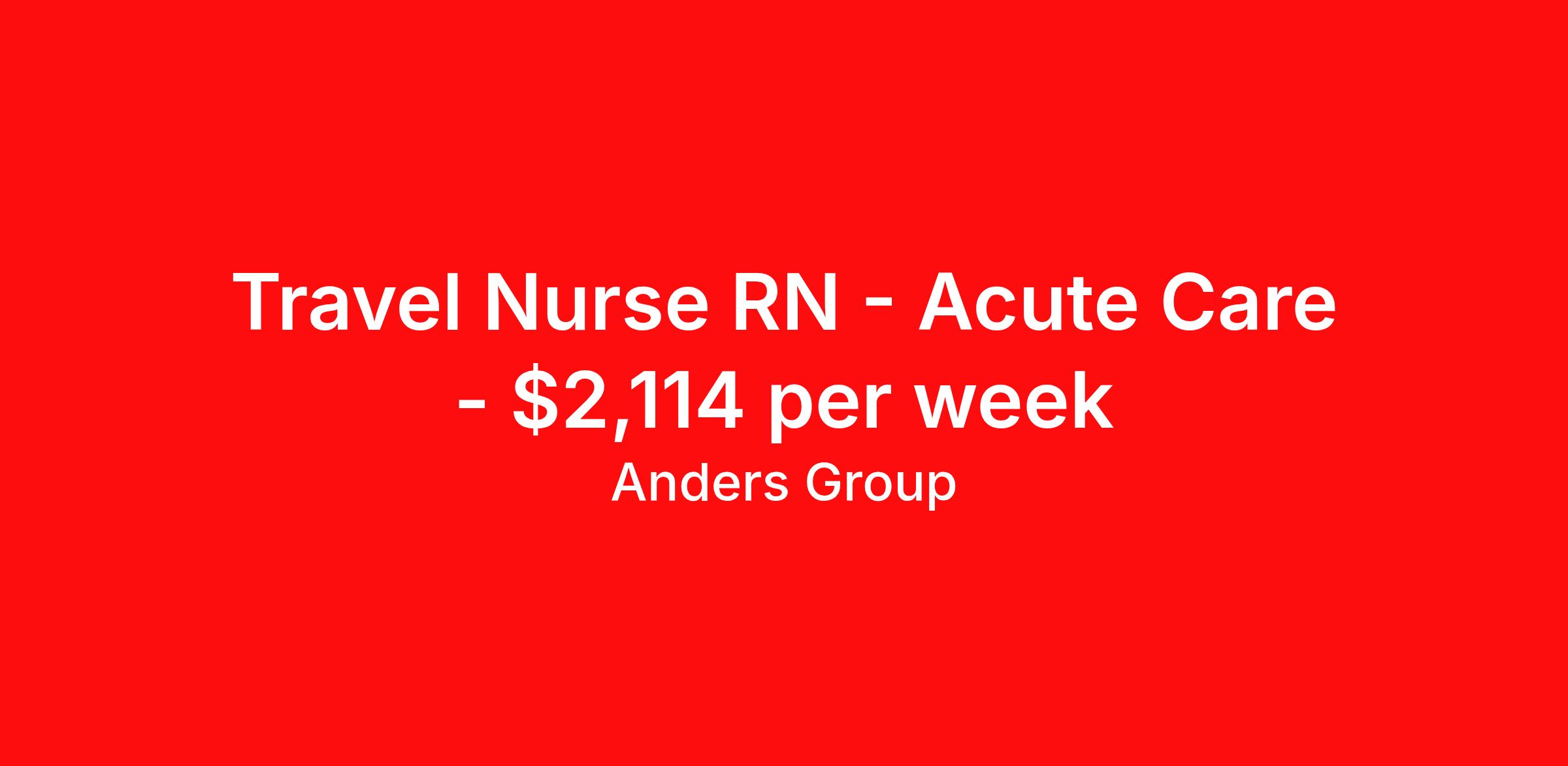 Anders Group is seeking a travel nurse RN Acute Care for a travel nursing job in Newport News, Virginia. Job Description & Requirements Specialty: Acute Care Discipline: RN Start Date: 04/06/2026 Duration: 13 weeks 36 hours per week Shift: 12 hours, evenings Employment Type: Travel Anders Group Job ID 1002786. Pay package is based on 12 hour shifts and 36 hours per week (subject to confirmation) with tax-free stipend amount to be determined. Posted job title: Tech Ctr-Peninsula Urgent Care RN Urgent Care About Anders Group WHY ANDERS? Anders Group is a Joint Commission accredited staffing agency and stands out from other agencies by our commitment to making sure our travelers are given the best customer service. Our team works hard to find the best jobs with the most aggressive rates! Anders Group offers rewarding assignments and competitive compensation packages, nationwide! We offer the following benefits from day one: Health Insurance, Including a Buy-up Option Dental Insurance Vision Insurance Life Insurance 401(k) Licensure Reimbursement Premium Pay Packages CEU Reimbursements Daily Per Diems Travel Reimbursements Rental Car Allowances Continuing Education Resources Referral Bonus And Many More! THE ANDERS DIFFERENCE You're committed to providing exceptional healthcare. We're committed to you. Anders Group was founded by a team of healthcare recruiters who had built strong relationships with healthcare facilities and professionals nationwide. As staffing firms shifted their focus to numbers and margins, these recruiters saw a need for a company to take a different approach to staffing. Anders Group was founded in 2010 to do just that. We focus on individual and facility goals to make quality placements. Great people working with great facilities make for the best placements. Through our focus on providing the best experience to Allied and Nursing health care professionals, Anders Group has grown to be a top staffing firm in Healthcare. We look forward to working with you! Benefits Medical benefits Dental benefits Vision benefits Life insurance 401k retirement plan License and certification reimbursement Continuing Education Referral bonus