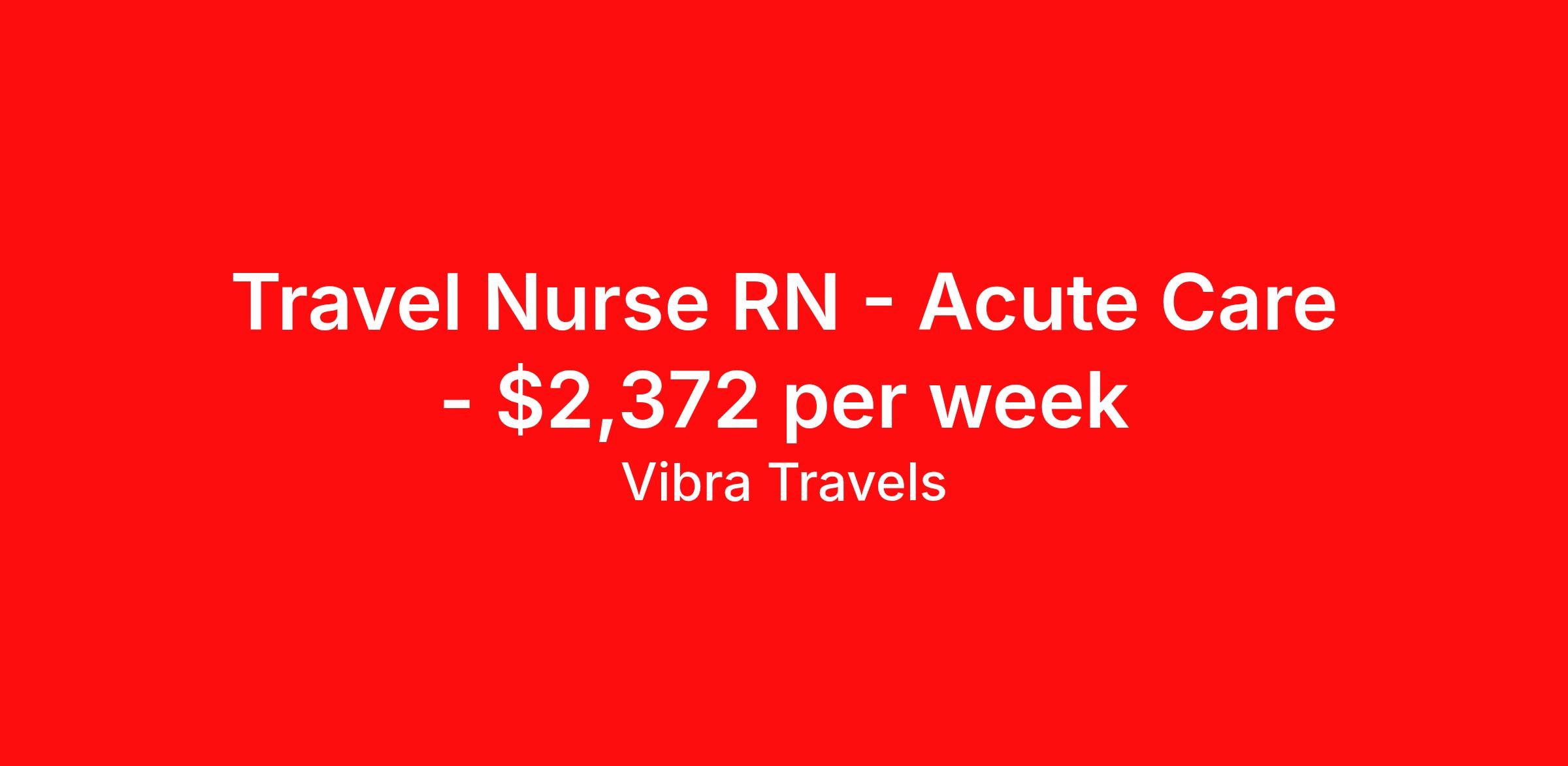 Vibra Travels is seeking a travel nurse RN Acute Care for a travel nursing job in Pittsburgh, Pennsylvania. Job Description & Requirements Specialty: Acute Care Discipline: RN Duration: 13 weeks 36 hours per week Shift: 12 hours, nights Employment Type: Travel VIBRA TRAVELS is looking for a CORPORATE TRAVEL REGISTERED NURSE to join our team. We look for nurses with acute care experience in ICU, step down, med surg/tele, and acute rehab. Benefits/Perks of working with VIBRA TRAVELS: • Work with 1 recruiter from start to finish and assignment to assignment • Local and Non-local positions available • Competitive hourly rate in addition to tax-free stipend (if applicable) • No pay cuts mid-contract • Referral bonus (up to $1000 per referral!) • License reimbursement if traveling to new state where new license is required • Your pick of assignments at facilities we own and operate nationwide (70) or partner facilities Qualifications/Skills: • Current BLS certification from a Vibra-approved vendor required. • Additional certifications may be required by Vibra Travels (ex ACLS, PALS, NRP) • 1 full year of RN experience; Diploma or Associate of Science Degree in Nursing required. Current, valid, and active license to practice as a Registered Nurse in the state of employment required. Additional Qualifications/Skills: • Previous acute care experience is strongly preferred. • Ability to project a professional image. • Knowledge of regulatory standards and compliance requirements. • Strong organizational, prioritizing and analytical skills. • Ability to make independent decisions when circumstances warrant. • Working knowledge of computer and software applications used in job functions. • Freedom from illegal use of and effects of use of drugs and alcohol in the workplace Per Federal Health Care Worker Vaccine Requirements, all employees must be fully vaccinated against COVID-19 or be approved for a valid religious or medical exemption. Anyone hired by the company must provide proof of their COVID-19 vaccine before they can begin employment or request and be approved for a valid religious or medical exemption. Unvaccinated employees on an approved exemption must submit to weekly COVID-19 testing and wear a respirator at all times while in the facility. Some states and locations require increased frequency testing pursuant to state regulations. Vibra Travels Job ID 2026010738. Pay package is based on 12 hour shifts and 36 hours per week (subject to confirmation) with tax-free stipend amount to be determined. About Vibra Travels Regardless of the placement you’re seeking, you’ll experience the same great benefits when choosing Vibra Travels for your next contract. White-glove service, every step of the way: At Vibra Travels, we believe in providing top-notch service to our travel nurses. From the moment you first contact us, you’ll experience a level of support and care that sets us apart from the rest. Your recruiter, your partner: Unlike other travel nursing agencies, we believe in building one-on-one relationships with our clinicians. Your dedicated recruiter will be your advocate, guiding you through the entire process and ensuring your needs are met. Clinical support at your fingertips: We understand that being a traveler can sometimes be challenging. That’s why we have a dedicated clinical support team available to answer any questions or concerns you may have during your assignments. Nationwide placements, endless opportunities: With Vibra Travels, you’ll have access to placements across the nation. Whether you’re looking for an acute care, rehabilitation, critical care, or behavioral health hospital, we have opportunities waiting for you in every corner of the country. Join us today and experience traveling done different! Benefits Holiday Pay License and certification reimbursement Medical benefits Referral bonus