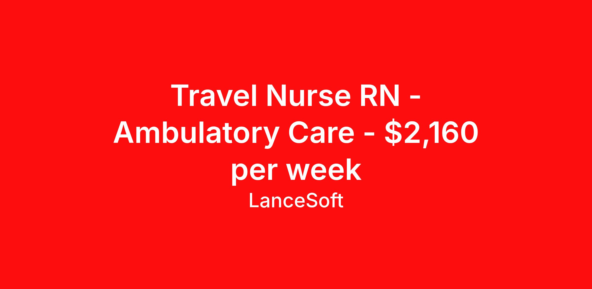 Travel Nurse RN - Ambulatory Care - $2,160 per week