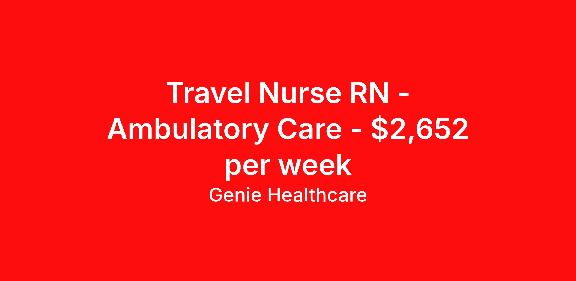 Genie Healthcare is seeking a travel nurse RN Ambulatory Care for a travel nursing job in Colorado Springs, Colorado. Job Description & Requirements Specialty: Ambulatory Care Discipline: RN Start Date: 03/31/2026 Duration: 13 weeks 40 hours per week Shift: 8 hours, days Employment Type: Travel Heart and Vascular Clinic Valley View is looking for a Clinic RN Traveler to work Monday-Friday Days. Primary Responsibilities: Triage and assess patient concerns Provide care coordination across cardiology services Assist with Exercise Stress Tests and Tilt Table Tests Perform EKGs and manage heart monitoring equipment Start IVs for diagnostic testing Educate patients on cardiac conditions, medications, and treatment plans Occasionally assist with patient rooming in clinic Requirements: Current Colorado RN license,, in good standing. BLS and ACLS Certifications through the American Heart Association. 3 years of Cardiology specific Clinic/Ambulatory experience is required. Experience with Athena and Epic. EMR Conversion from Athena to Epic end of April. About Genie Healthcare Genie Healthcare is one of the fastest growing Nurse Travel Agencies in the USA. Genie serves hundreds of facilities and has over 4000 current travel RN contracts open at any given time. Genie provides travel RN’s flexibility, support, top pay scale, housing and the 1 rated, multi-state health insurance coverage. Genie Healthcare carries with it a commitment to providing a comprehensive level of service and quality care. Growing from a small team of eager recruiters to a company with satisfied clients in nearly every corner of the nation, delivering excellence in patient and customer care is the key to Genie’s success. The management team has 20 years of experience in workforce solutions and staffing in medical and non-medical fields, roles ranging from Clerical job to Cardiologist to software developer to CEO.