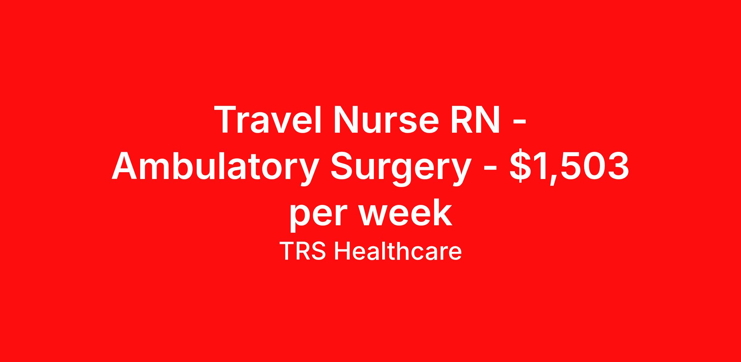 Travel Nurse RN - Ambulatory Surgery - $1,503 per week