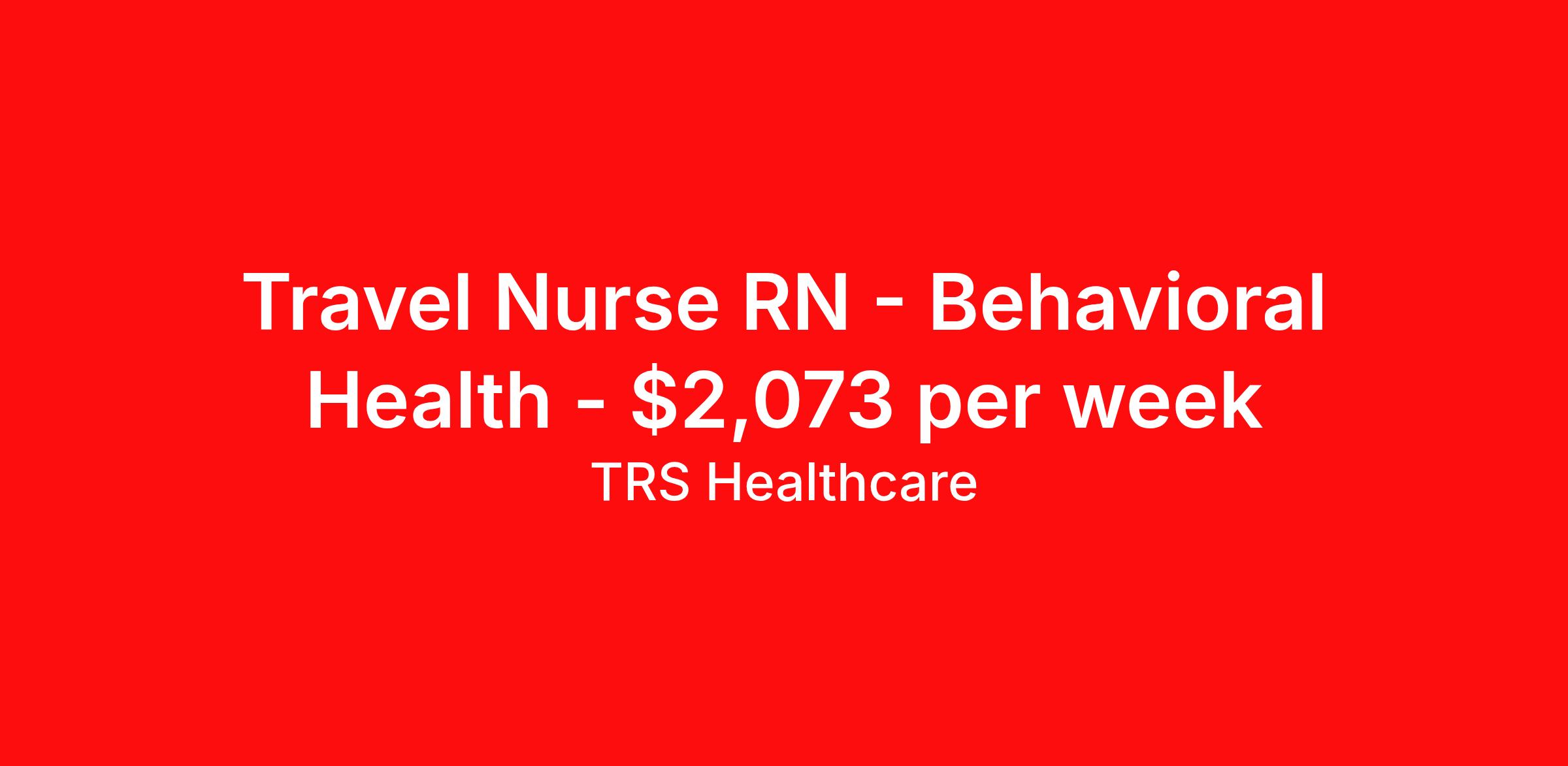 TRS Healthcare is seeking a travel nurse RN Behavioral Health for a travel nursing job in Woodsville, New Hampshire. Job Description & Requirements Specialty: Behavioral Health Discipline: RN Start Date: 03/23/2026 Duration: 13 weeks 36 hours per week Shift: 12 hours, nights Employment Type: Travel TRS Healthcare Job ID 1446332. Pay package is based on 12 hour shifts and 36 hours per week (subject to confirmation) with tax-free stipend amount to be determined. Posted job title: Behavioral Health Acute Care - Geriatric Registered Nurse About TRS Healthcare TRS Healthcare has been a leader in the healthcare staffing industry for over 25 years, providing exceptional career opportunities for travel nurses and allied health professionals. An RN-founded, woman-owned company, TRS Healthcare has team members in all 50 states. We recruit and support registered nurses, licensed practical nurses, surgical technicians, respiratory therapists, imaging technologists, laboratory specialists, and other experienced nursing and allied healthcare professionals. We staff hundreds of healthcare facilities across the U.S. in urban, rural, and underserved areas, including multi-state hospital systems, critical access hospitals, rural community hospitals, long-term care facilities, trauma centers, standalone clinics, and more. Learn more about TRS Healthcare at trshealthcare.com .