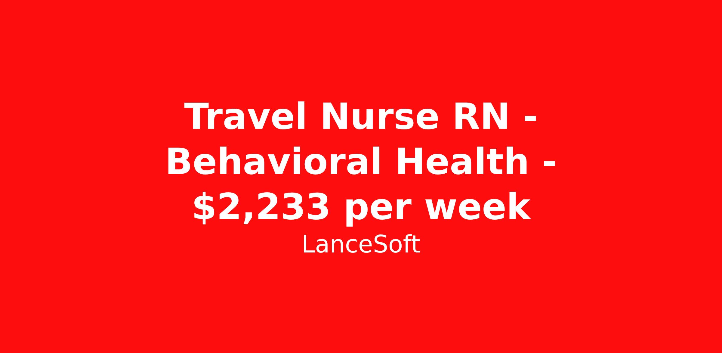Travel Nurse RN - Behavioral Health - $2,233 per week
