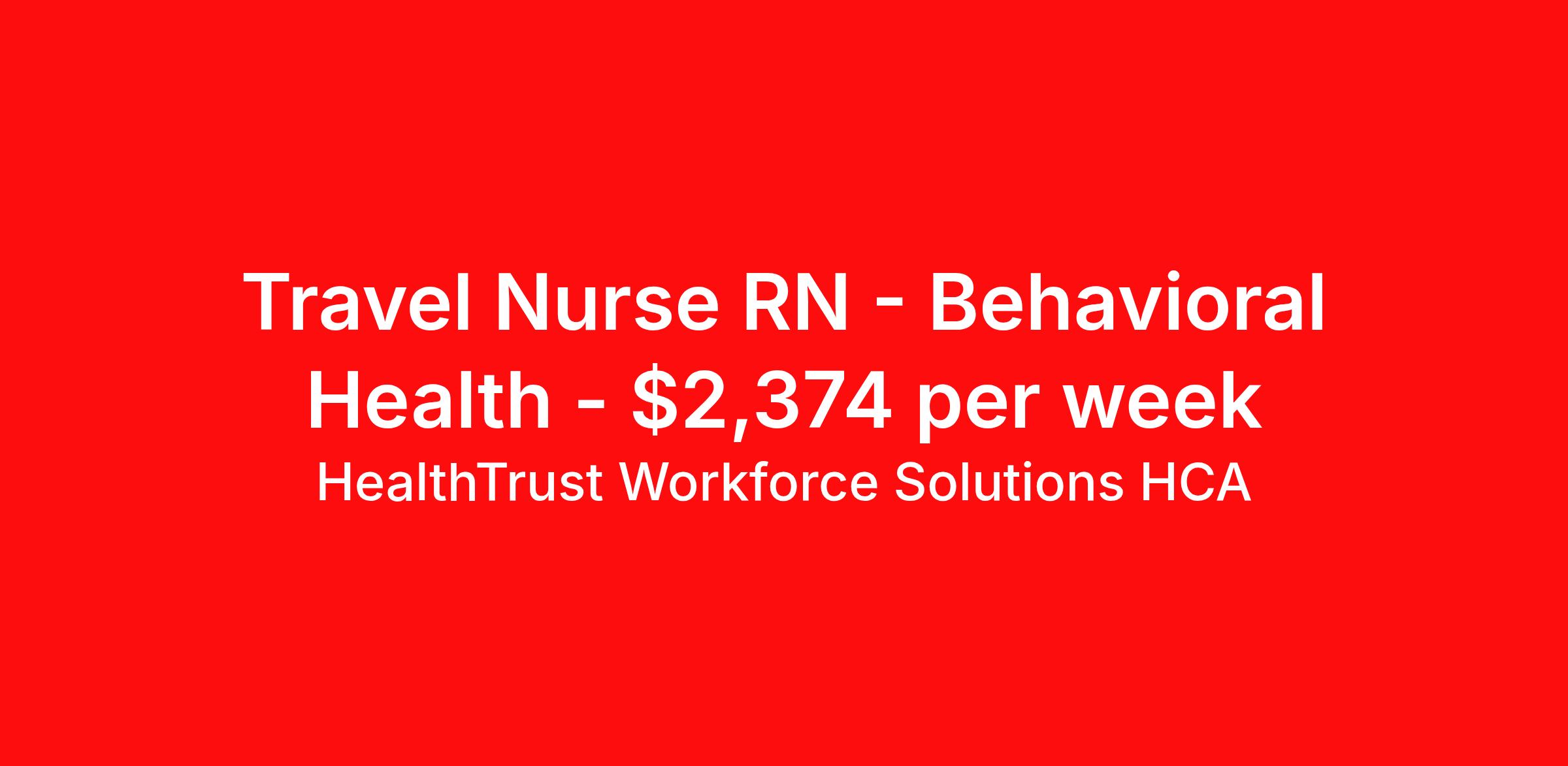 HealthTrust Workforce Solutions HCA is seeking a travel nurse RN Behavioral Health for a travel nursing job in Falls Church, Virginia. Job Description & Requirements Specialty: Behavioral Health Discipline: RN Start Date: 04/13/2026 Duration: 13 weeks 36 hours per week Shift: 12 hours, days Employment Type: Travel BLS and CPI (Blue Card) required prior to submission. Guaranteed hours, weekly pay and medical benefits. About HealthTrust Workforce Solutions HCA At HealthTrust Workforce Solutions, healthcare is not just about the four walls of a facility but about the people who provide and receive care. Our focus is on empowering healthcare professionals to deliver exceptional patient experiences by providing them with the necessary skills, tools, and support. We partner with healthcare facilities nationwide to ensure that the right professionals are in the right roles. We prioritize our clinicians by giving them a voice and access to opportunities to fulfill their mission of improving lives by providing quality patient care. We are committed to our core values of Trust, Innovation, Adaptability, Courage, and Accountability. We are dedicated to positively impacting the healthcare industry by providing first-priority access to more than 200,000 jobs nationwide to our healthcare professionals. Join us and be part of the HealthTrust family, where you can make a difference every day. We embrace our changing environment, and we maintain a culture that has a rich tradition of transforming itself to meet the challenges of the future. MISSION STATEMENT While putting great people in the right roles is essential, our mission is far greater. We want our clinicians to be part of the HealthTrust family, where healthcare professionals have a voice and are empowered with the right tools and opportunities to fulfill their personal mission of improving lives. Plus, as a preferred partner to thousands of top-performing hospitals, we provide our healthcare professionals with first-priority access to more than 200,000 jobs nationwide. Benefits Dental benefits Vision benefits Referral bonus Continuing Education Life insurance