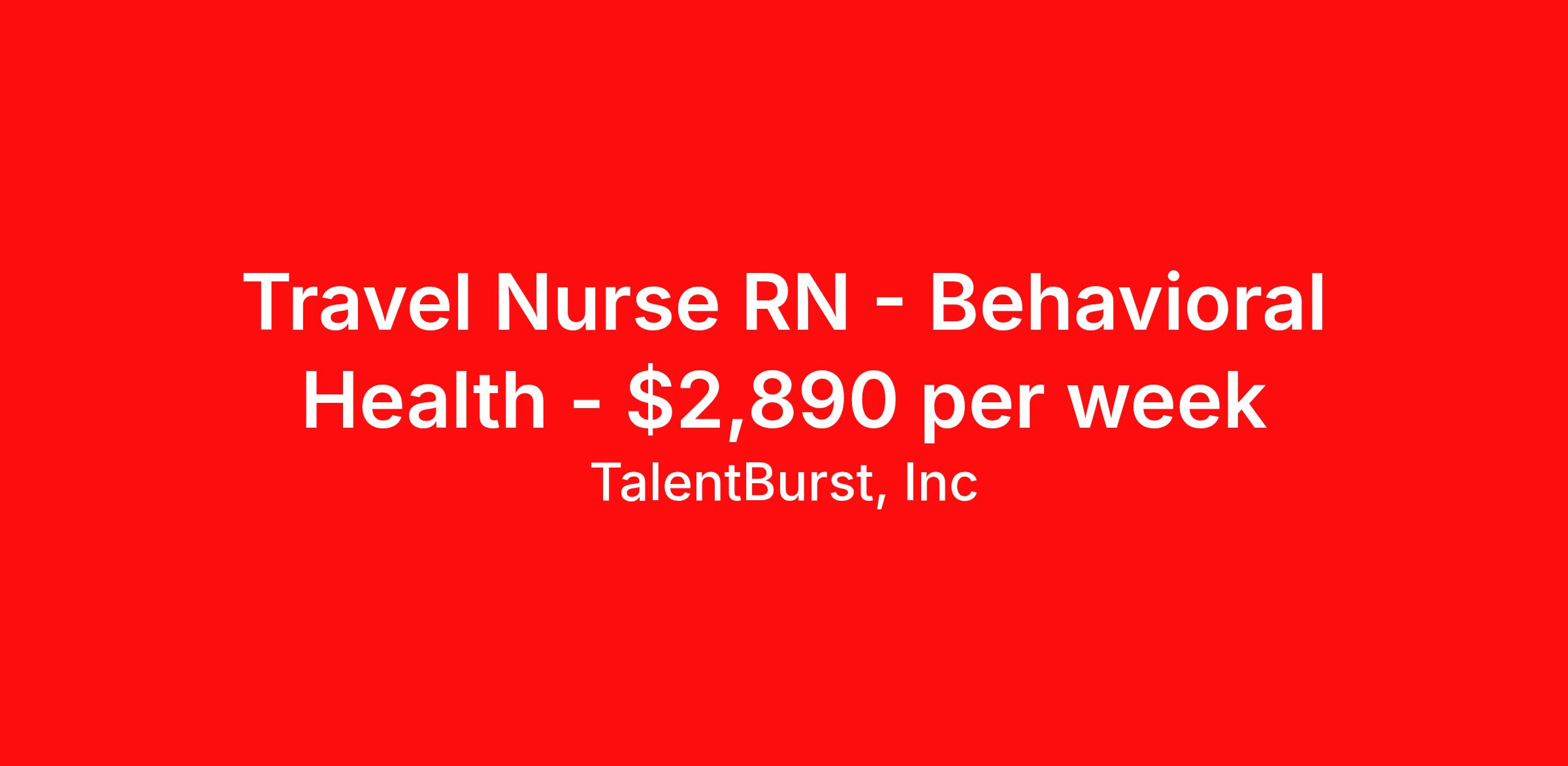 TalentBurst, Inc is seeking a travel nurse RN Behavioral Health for a travel nursing job in Concord, Massachusetts. Job Description & Requirements Specialty: Behavioral Health Discipline: RN Start Date: 04/06/2026 Duration: 13 weeks 40 hours per week Shift: 8 hours, days, evenings Employment Type: Travel Shifts: Days, 40 hours - 5x8s, 7am-3:30pm, every other weekend - Saturday & Sunday, every other holiday and no on-call. Evenings, 3p-11:30p, 40 hours - 5x8s, every weekend - Saturday & Sunday, every other holiday and no on-call. Requirements : Travel Experience Required 2 years' experience required with Acute care experience included Must be CPI Blue certified MA RN License, BLS required. 26-05008 (m) About TalentBurst, Inc TalentBurst Health & Life Sciences is an established provider of healthcare workforce solutions, servicing healthcare facilities across the United States for over 15 years. As a Joint Commission Certified Agency, our commitment to quality, integrity, and exceptional service has made us a trusted name in the healthcare staffing landscape. Our mission is to bridge the gap between healthcare professionals seeking fulfilling opportunities and healthcare organizations striving to maintain their high standards of care. We are committed to providing top-notch healthcare professionals with access to facilities where they can focus on delivering exceptional patient care and thrive. Whether you're a nurse, allied health professional, or administrative personnel, we have the expertise to match your skills and aspirations with the perfect placement.