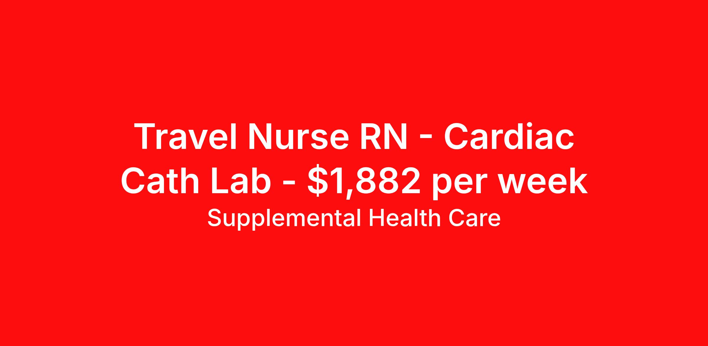 Supplemental Health Care is seeking a travel nurse RN Cardiac Cath Lab for a travel nursing job in Ocala, Florida. Job Description & Requirements Specialty: Cardiac Cath Lab Discipline: RN Start Date: ASAP Duration: 13 weeks 36 hours per week Shift: 12 hours, days Employment Type: Travel Job Description: Supplemental Health Care is connecting Cardiac Catherization Registered Nurses with top-tier hospital contracts in Ocala, Florida. Travel or stay local, either way, we’ll guide you to an opportunity that matches your goals, offering excellent pay, benefits, and support. Qualifications: Current Florida Registered Nurse License / Certification American Heart Association BLS 1 to 2 years of recent Cardiac Catherization experience Cardiac Catherization Registered Nurse Contract Details: $1,710 - $1,882 per week* Weekly pay 13-week contract with possibility to extend AM shifts available *Estimated weekly payment may include both taxable wages and tax-free reimbursements for meals, housing, and incidentals. Please speak with a recruiter for details. What We Offer: Full medical, dental, vision, life, and even pet insurance! Round the clock support. No matter where you are or what time it is, Supplemental Health Care is standing by. SHC's Share the Care referral program is the most dynamic, profitable referral program in the industry. 401(k) Retirement Savings Program with a wide range of investment options. Discounted and free online access to CEU courses through Supplemental University. Apply now to launch your next Cardiac Catherization Registered Nurse assignment, or ask our team about other exciting Registered Nurse opportunities. Supplemental Health Care is an Equal Opportunity Employer. All candidates, including veterans and those with disabilities, are encouraged to apply. SHC will consider for employment qualified applicants with criminal histories in a manner consistent with the requirements of applicable local, state, or federal law. To learn more, visit www.shccares.com/eeo Supplemental Health Care Job ID 1469208. Pay package is based on 12 hour shifts and 36 hours per week (subject to confirmation) with tax-free stipend amount to be determined. Posted job title: Cardiac Catherization Registered Nurse About Supplemental Health Care At Supplemental Health Care, a simple belief in the power of caring guides a unique commitment to world-class service in healthcare staffing. For 40 years, we’ve supported talented professionals pursuing their life calling in hospitals, schools, home health, corrections, behavioral health, and other settings. At SHC, we inspire vital connections and enrich lives and inspire better outcomes. As recipients of the Best in Staffing Awards for both Client and Talent, Supplemental Health Care is proud to be among only 2% of staffing companies singled out for the distinction based on the real feedback of our employees and the clients we serve. SHC has also earned The Joint Commission’s Gold Seal of Approval and is named among the Largest Health Care Staffing companies in the United States by Staffing Industry Analysts. We are also thrilled to recognize our very own SLP, Dr. Kelly Byrd as the American Staffing Association 2024 National Staffing Employee of the Year and Health Care Sector All-Star. We’re honored to connect Dr. Byrd to employment, share her incredible story, and support her family literacy nonprofit. For everyone that we serve, SHC is the place where caring hearts thrive. Benefits Referral bonus Benefits start day 1 401k retirement plan Continuing Education Discount program Health savings account