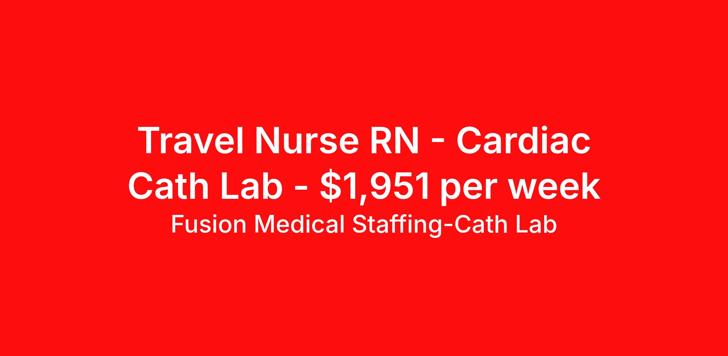 Fusion Medical Staffing-Cath Lab is seeking a travel nurse RN Cardiac Cath Lab for a travel nursing job in Victoria, Texas. Job Description & Requirements Specialty: Cardiac Cath Lab Discipline: RN Start Date: ASAP Duration: 13 weeks 40 hours per week Shift: 8 hours, days Employment Type: Travel Travel Cath Lab RN Company: Fusion Medical Staffing Location: Facility in Victoria, Texas Job Details Fusion Medical Staffing is seeking a skilled Cardiac Cath Lab RN for a 13-week travel assignment in Victoria, Texas. As a member of our team, you'll have the opportunity to make a positive impact on the lives of patients while enjoying competitive pay, comprehensive benefits, and the support of a dedicated clinical team. Required Qualifications: One year’s recent experience as a Cath Lab RN Valid RN license in compliance with state regulations Current BLS (AHA/ ARC) Certification Current ACLS Certification Preferred Qualifications: PALS or ENPC Certifications RCIS certification Other certifications and licenses may be required for this position Summary: The Travel Cath Lab RN provides specialized care for patients undergoing cardiac catheterization and interventional treatments. The RN prepares patients for procedures, assists during interventions, and monitors immediate post-procedure recovery. Working closely with cardiologists and cath lab teams, this role requires advanced cardiac care skills, cardiac catheterization skills, strong communication, and the ability to adapt quickly while maintaining strict safety and regulatory standards. Essential Work Functions: Conduct assessment of patients prior to procedures, including reviewing medical history and performing physical exams Assist in positioning patients correctly for the procedure and ensure EKG electrodes and cardiac leads are properly placed Assist physicians during procedures, including the placement of catheters, wires, balloons, stents, structural heart devices, and other cardiac interventions Operate and monitor hemodynamic equipment, recognizing and responding to changes in cardiac rhythms and hemodynamic waveforms Assist in arterial and/or venous sheath removal using closure devices, manual pressure, or mechanical compression, and transport patients to the appropriate recovery area Monitor vital signs, ECG, and hemodynamic parameters during cardiac catheterization and interventional procedure Support post-procedure care, including monitoring patient recovery and ensuring a smooth transition to the next phase of care Maintain and troubleshoot cath lab equipment, ensuring everything is functioning properly and fully stocked for procedures Communicate effectively with team members, patients, families, and physicians to provide seamless care Adhere to hospital safety protocols, infection control guidelines, and regulatory standards Perform other duties as assigned within the scope of practice Required Essential Skills: Critical thinking, service excellence, and good interpersonal communication skills The ability to read, write, and communicate in the English language Ability to read/comprehend written instructions, follow verbal instructions, and proficiency in PC skills Physical Abilities - Must be able to remain in a stationary position, move about, move equipment (50-100lbs), push, pull, and bend Interpersonal Skills - Must be able to work effectively with a variety of personnel (professional and ancillary) to present a positive attitude and professionalism Technical/Motor Skills - Must have the ability to grasp, perform fine manipulation, push/pull, and move about when assisting with procedures and/or using department equipment Mental Requirements - Must be able to cope with frequent contact with the general public and customers while meeting deadlines under pressure. Must be able to work under close supervision occasionally, as well as working without assistance from other personnel. Must be able to contend with irregular activity schedules occasionally and continuous concentration to detail Sensory - Must possess visual acuity and ability to effectively communicate Benefits Include: Highly competitive pay for travel professionals Comprehensive medical, dental, and vision insurance with first day coverage Paid Time Off (PTO) after 1560 hours Life and Short-term disability offered 401(k) matching Aggressive Refer-a-friend Bonus Program 24/7 recruiter support Reimbursement for licensure and CEUs Why Choose Fusion? At Fusion Medical Staffing, our goal is to improve the lives of everyone we touch, and we're always looking for people like you to join our mission. Your passion for helping others deserves a partner just as committed to supporting you — that’s why we offer day one insurance, $0 copay for mental health services, scholarships and awards, exclusive discounts, and more. From your personal recruiter to our clinical and traveler experience teams, we’re here to guide and celebrate you along your journey. You take care of others; we take care of you. Other Duties Disclaimer: To perform this job successfully, an individual must be able to perform each essential duty satisfactorily. The requirements listed are representative of the knowledge, skill, and/or ability required. Reasonable accommodations may be made to enable individuals with disabilities to perform the essential functions. Other duties may be assigned. This job description is not a comprehensive list of all activities, duties, or responsibilities that are required of the employee for this job and is subject to change at any time with or without notice. Start your rewarding career as a Travel Cath Lab RN with Fusion Medical Staffing and join our mission to improve lives. Apply now! *Fusion is an EOE/E-Verify Employer Fusion Medical Staffing - Cath Lab Job ID 1864246. Pay package is based on 8 hour shifts and 40 hours per week (subject to confirmation) with tax-free stipend amount to be determined. About Fusion Medical Staffing-Cath Lab With a mission to improve