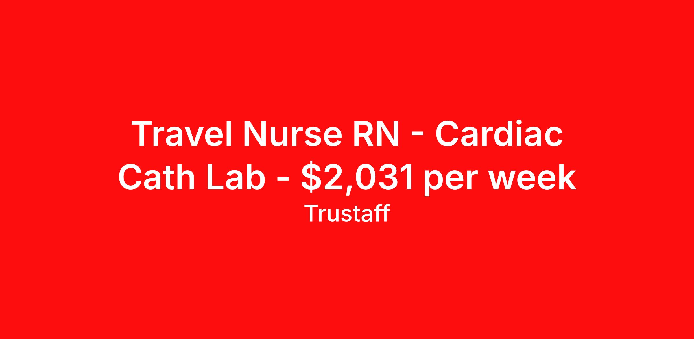 Travel Nurse RN - Cardiac Cath Lab - $2,031 per week