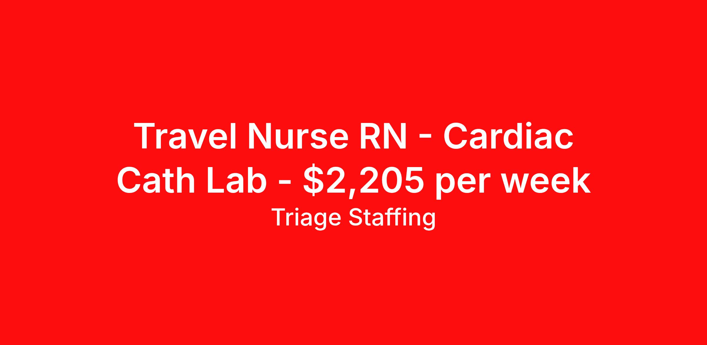 Travel Nurse RN - Cardiac Cath Lab - $2,205 per week