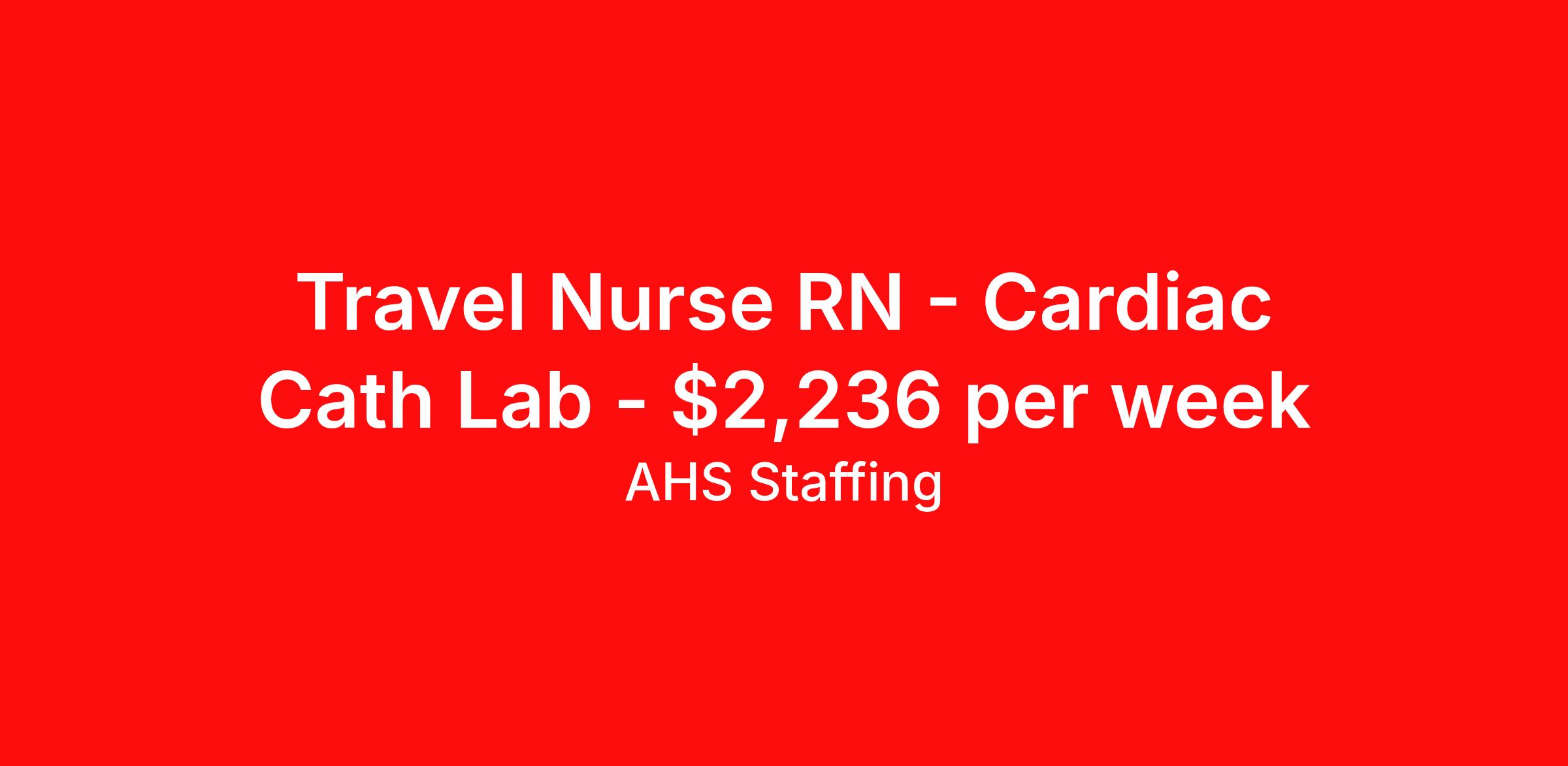 Travel Nurse RN - Cardiac Cath Lab - $2,236 per week