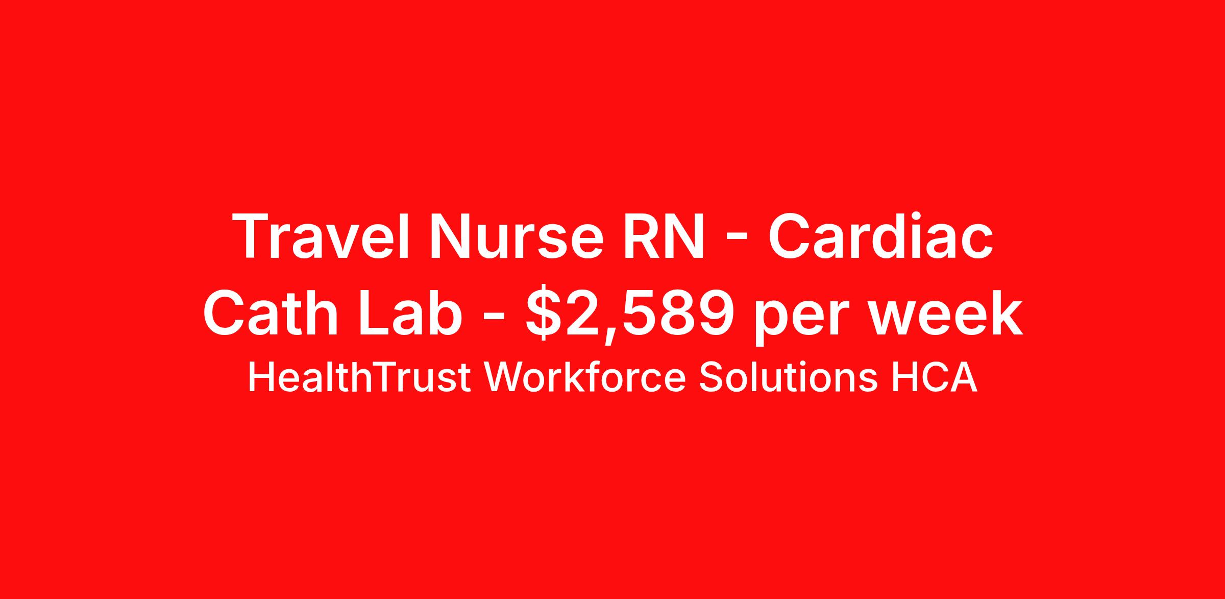 HealthTrust Workforce Solutions HCA is seeking a travel nurse RN Cardiac Cath Lab for a travel nursing job in San Antonio, Texas. Job Description & Requirements Specialty: Cardiac Cath Lab Discipline: RN Duration: 13 weeks 40 hours per week Shift: 10 hours, days Employment Type: Travel About HealthTrust Workforce Solutions HCA At HealthTrust Workforce Solutions, healthcare is not just about the four walls of a facility but about the people who provide and receive care. Our focus is on empowering healthcare professionals to deliver exceptional patient experiences by providing them with the necessary skills, tools, and support. We partner with healthcare facilities nationwide to ensure that the right professionals are in the right roles. We prioritize our clinicians by giving them a voice and access to opportunities to fulfill their mission of improving lives by providing quality patient care. We are committed to our core values of Trust, Innovation, Adaptability, Courage, and Accountability. We are dedicated to positively impacting the healthcare industry by providing first-priority access to more than 200,000 jobs nationwide to our healthcare professionals. Join us and be part of the HealthTrust family, where you can make a difference every day. We embrace our changing environment, and we maintain a culture that has a rich tradition of transforming itself to meet the challenges of the future. MISSION STATEMENT While putting great people in the right roles is essential, our mission is far greater. We want our clinicians to be part of the HealthTrust family, where healthcare professionals have a voice and are empowered with the right tools and opportunities to fulfill their personal mission of improving lives. Plus, as a preferred partner to thousands of top-performing hospitals, we provide our healthcare professionals with first-priority access to more than 200,000 jobs nationwide. Benefits Dental benefits Vision benefits Referral bonus Continuing Education Life insurance