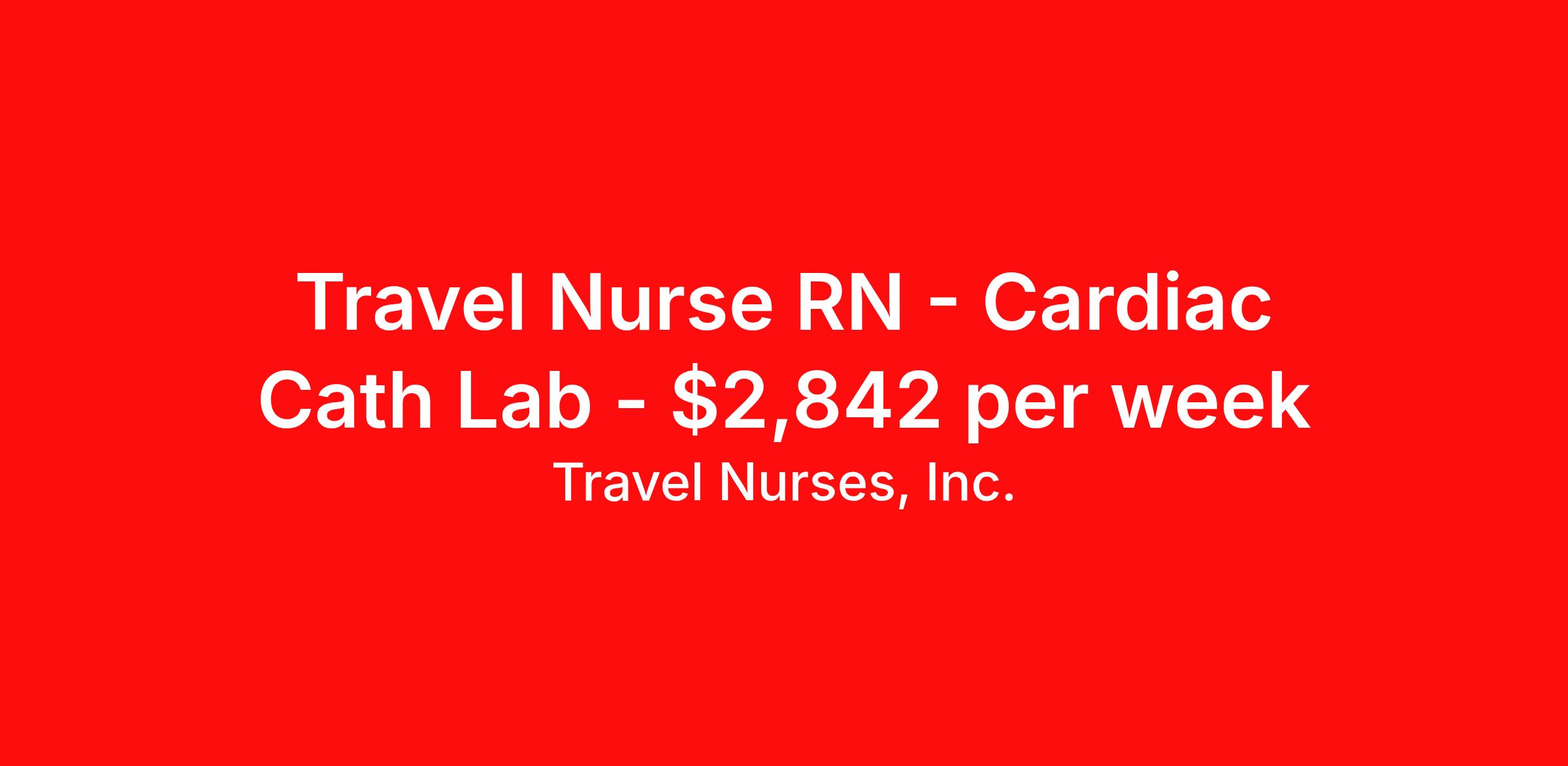 Travel Nurses, Inc. is seeking a travel nurse RN Cardiac Cath Lab for a travel nursing job in York, Pennsylvania. Job Description & Requirements Specialty: Cardiac Cath Lab Discipline: RN Start Date: 04/13/2026 Duration: 13 weeks 40 hours per week Shift: 8 hours Employment Type: Travel Travel Nurses, Inc. is a nurse-founded staffing agency built on transparency and trust. We are seeking an experienced registered nurse for a travel assignment. This position is ideal for clinicians who meet distance requirements and are ready to provide excellent patient care in a rewarding environment. The onboarding process you deserve: Our recruiters make the travel process simple from start to finish. Before every contract, clinicians complete an engagement letter review that outlines pay packages, compliance and expectations. With a dedicated recruiter and clinical support available 24/7, you can focus on caring for patients while we handle the rest. Qualifications: ~One to two years of recent experience in the posted specialty ~Active state or compact registered nurse license ~Basic Life Support (BLS) and specialty-specific certifications required Benefits: ~Competitive compensation and stipends ~Day-one medical, dental and vision coverage ~401(k) plan ~Paid onboarding requirements ~Nurse referral bonus program ~Dedicated recruiter and clinical support 24/7 ~Exclusive travel contract opportunities Pay and compensation: Pay varies by facility and location. Equal opportunity statement: Travel Nurses, Inc. is committed to diversity, equity and inclusion at every level. Travel Nurses, Inc. Job ID 308621. Pay package is based on 8 hour shifts and 40 hours per week (subject to confirmation) with tax-free stipend amount to be determined. Posted job title: Cath Lab Registered Nurse About Travel Nurses, Inc. Travel Nurses, Inc. is a leading healthcare staffing agency that provides healthcare professionals with opportunities to work across the country. Founded by nurses in 1988, TNI has more than 30 years of experience in the industry. The agency initially focused on staffing operating room settings in the MidSouth. However, this quickly evolved to encompass all nursing specialties and allied health fields nationwide. At the heart of our mission is a profound respect for nurses, whom we consider the cornerstone of healthcare. This acknowledgment extends beyond the nursing profession alone. Travel Nurses, Inc. now proudly embraces a wide array of healthcare professionals, recognizing their crucial roles in our collective mission. Travel Nurses, Inc. is dedicated to providing comprehensive support and opportunities that will help facilitate complete career mobility in the healthcare field. Our commitment to transparency ensures that all professionals, not just nurses, can confidently accept any assignment without financial uncertainties. We prioritize our professionals’ well-being with comprehensive benefits packages, including day-one healthcare coverage, competitive salaries, bonuses and incentives. This underscores our unwavering commitment to offering the best possible rewards and support for all the professionals we serve. Benefits Weekly pay Continuing Education 401k retirement plan Wellness and fitness programs Mileage reimbursement Referral bonus Employee assistance programs Medical benefits Dental benefits Vision benefits Benefits start day 1 License and certification reimbursement Life insurance Retention bonus
