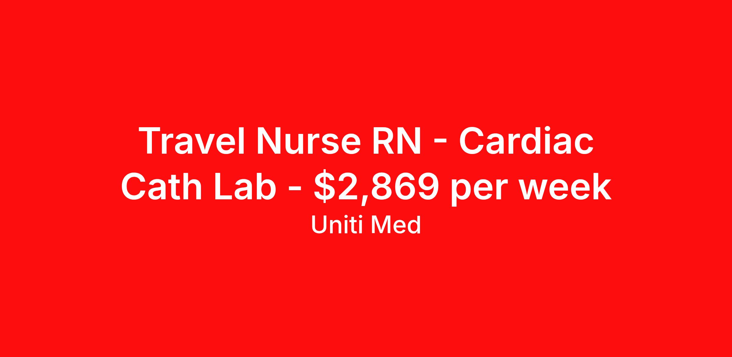 Travel Nurse RN - Cardiac Cath Lab - $2,869 per week