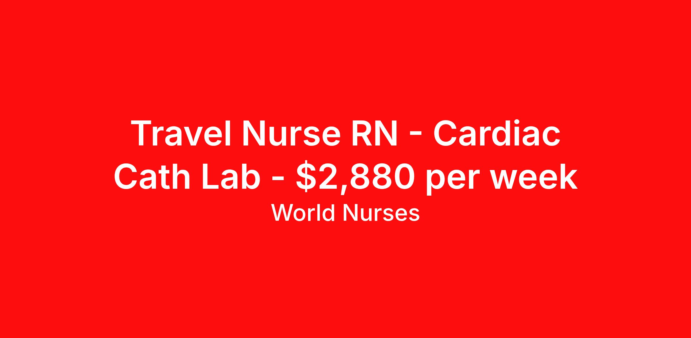 Travel Nurse RN - Cardiac Cath Lab - $2,880 per week