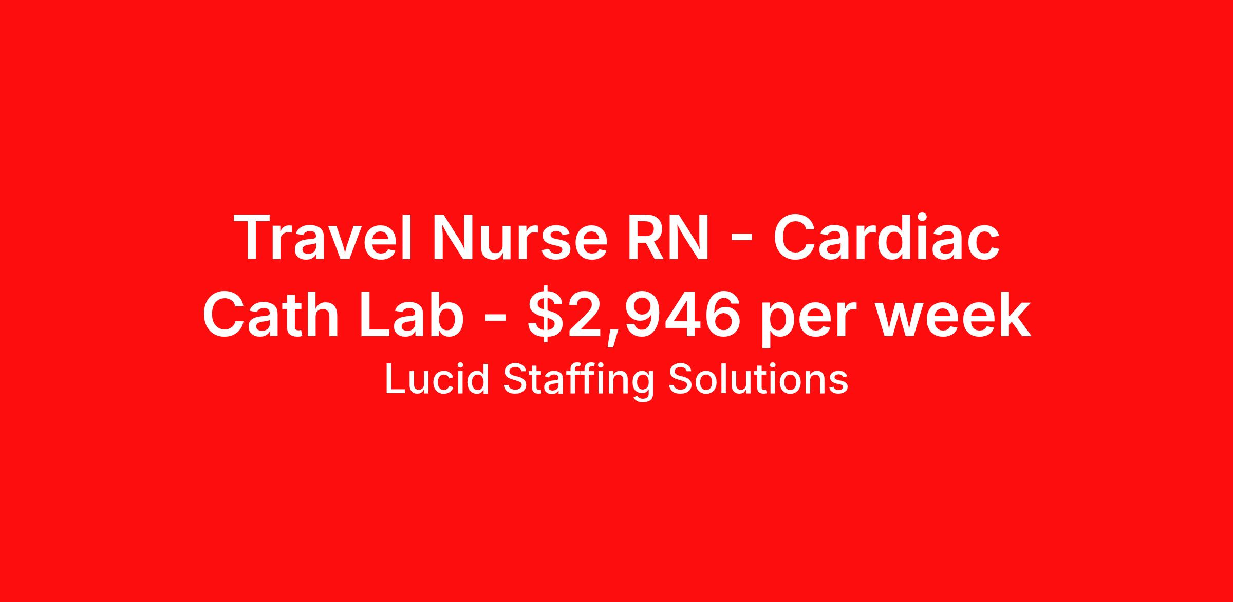 Lucid Staffing Solutions is seeking a travel nurse RN Cardiac Cath Lab for a travel nursing job in Modesto, California. Job Description & Requirements Specialty: Cardiac Cath Lab Discipline: RN Duration: 13 weeks 40 hours per week Shift: 8 hours, days Employment Type: Travel Job Description Position: Travel Registered Nurse (RN) with experience in Cath Lab Location: Modesto, California Shift: 8hr Day Weekly Gross: $2945.60 Lucid Staffing Solutions was created by former healthcare workers who lived the short staffing, the chaotic workflows, and the nonstop pressure that comes with patient care. We built an agency powered by real clinical experience, kept simple and supportive, so you never have to guess whether the people guiding you actually know what they’re talking about. Minimum Requirements: Active license as a Registered Nurse (RN) Licensed in California (If applicable) or compact eligible Two years of recent Cath Lab experience Active BLS Why Lucid Works for Travelers Paid Weekly: Stipends pushed to GSA limits whenever possible $500 Travel Reimbursement: Paid at the start of each assignment Clinician-Led Team: Recruiters and Account Managers with real clinical experience In-House Compliance: fast updates, real communication, and none of the delays that come with outsourced vendors. Health Coverage Options: Multiple medical plans plus dental, vision, and workers compensation 401(k) Match: 4 percent match after 6 months License & Certification Reimbursement: We help cover the cost of staying compliant Liability Insurance: Included automatically Referral Bonuses: $500 per referral, $750 after five referrals Ready to start your journey? Apply today to connect with a Clinician-Recruiter! Lucid Staffing Solutions Job ID 37722. Pay package is based on 8 hour shifts and 40 hours per week (subject to confirmation) with tax-free stipend amount to be determined. Posted job title: Cath Lab About Lucid Staffing Solutions Clinician Owned & Operated At Lucid Staffing Solutions, we do things differently—because we’ve been in your shoes. Founded by actual healthcare professionals, Lucid was built to fix the issues we experienced as travelers. We know what makes a great assignment: competitive pay, seamless onboarding, honest recruiters, and most importantly—working with a team that truly sees and supports you. Our entire team is made up of former clinicians who understand the demands of the job and what travelers truly need to succeed. We offer some of the highest paying allied health and nursing contracts across the country, along with some amazing benefits & perks. Whether you're chasing freedom, flexible schedules, bigger paychecks, or your next adventure, Lucid helps you get there—with real support, real respect , and real healthcare experts. Benefits Dental benefits Medical benefits Vision benefits