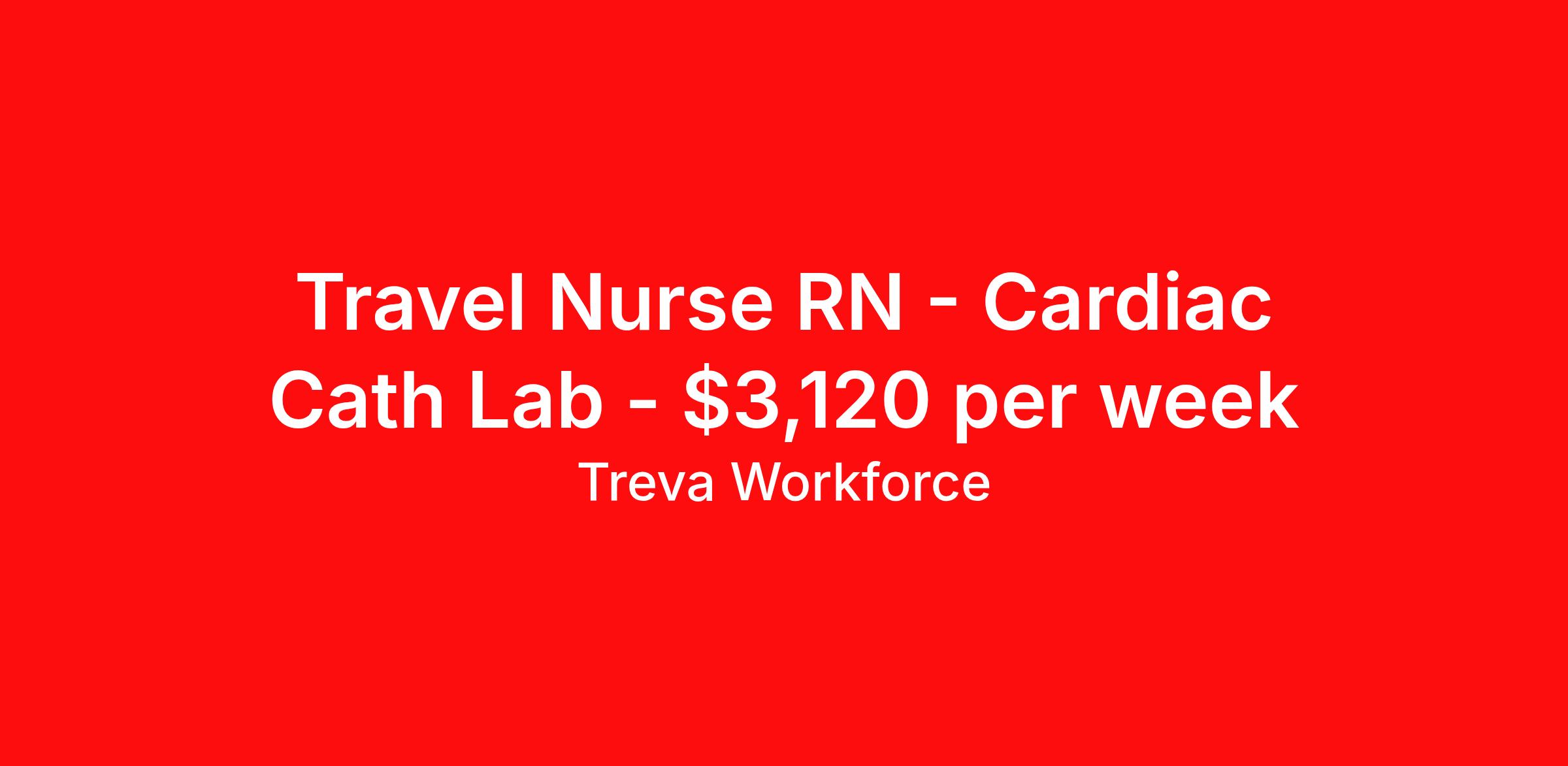 Treva Workforce is seeking a travel nurse RN Cardiac Cath Lab for a travel nursing job in York, Pennsylvania. Job Description & Requirements Specialty: Cardiac Cath Lab Discipline: RN Duration: 13 weeks 40 hours per week Shift: 10 hours, days Employment Type: Travel Treva Workforce Job ID 3230950. Pay package is based on 10 hour shifts and 40 hours per week (subject to confirmation) with tax-free stipend amount to be determined. About Treva Workforce Treva Workforce is a woman-owned healthcare staffing agency connecting healthcare professionals to nationwide opportunities. We stand out by offering 24/7 support, quick communication, and a team that truly listens. Recognized as a Michigan Top Workplaces organization and a Better Business Bureau Torch Awards for Ethics Finalist, we’re committed to doing things the right way. Treva Workforce provides comprehensive medical, dental, and vision coverage, a 401(k) retirement, life insurance, pet insurance, and dedicated recruiters who focus on finding roles that align with your goals, lifestyle, and career growth. From your first assignment to your last, Treva Workforce will support you every step of the way. Benefits Vision benefits Weekly pay 401k retirement plan Referral bonus Medical benefits Dental benefits