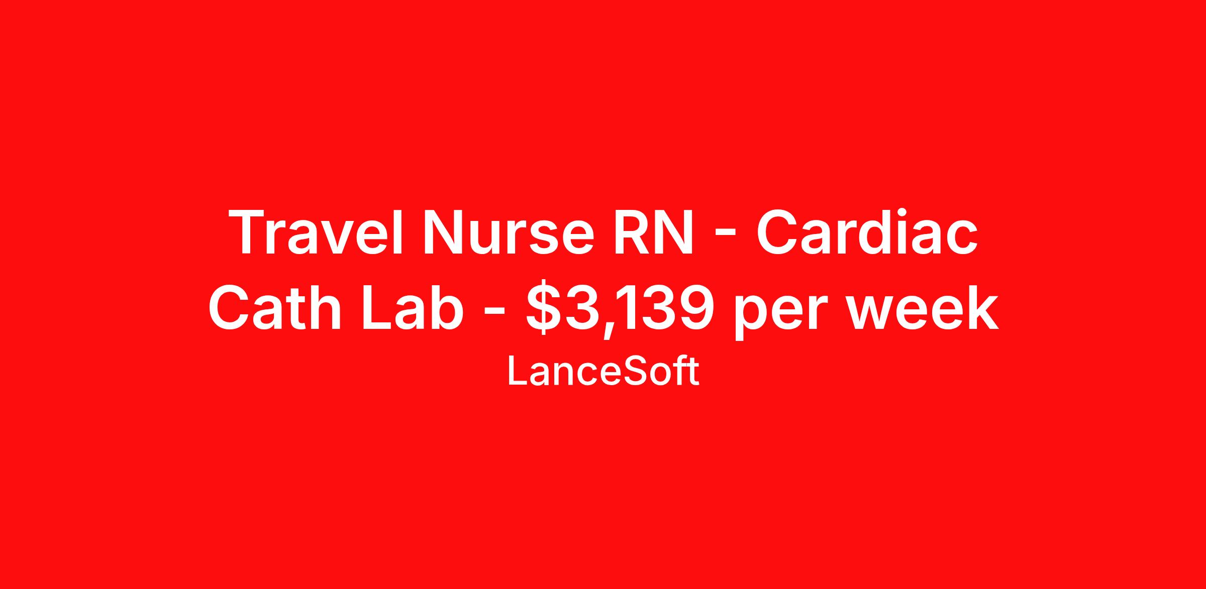 Travel Nurse RN - Cardiac Cath Lab - $3,139 per week
