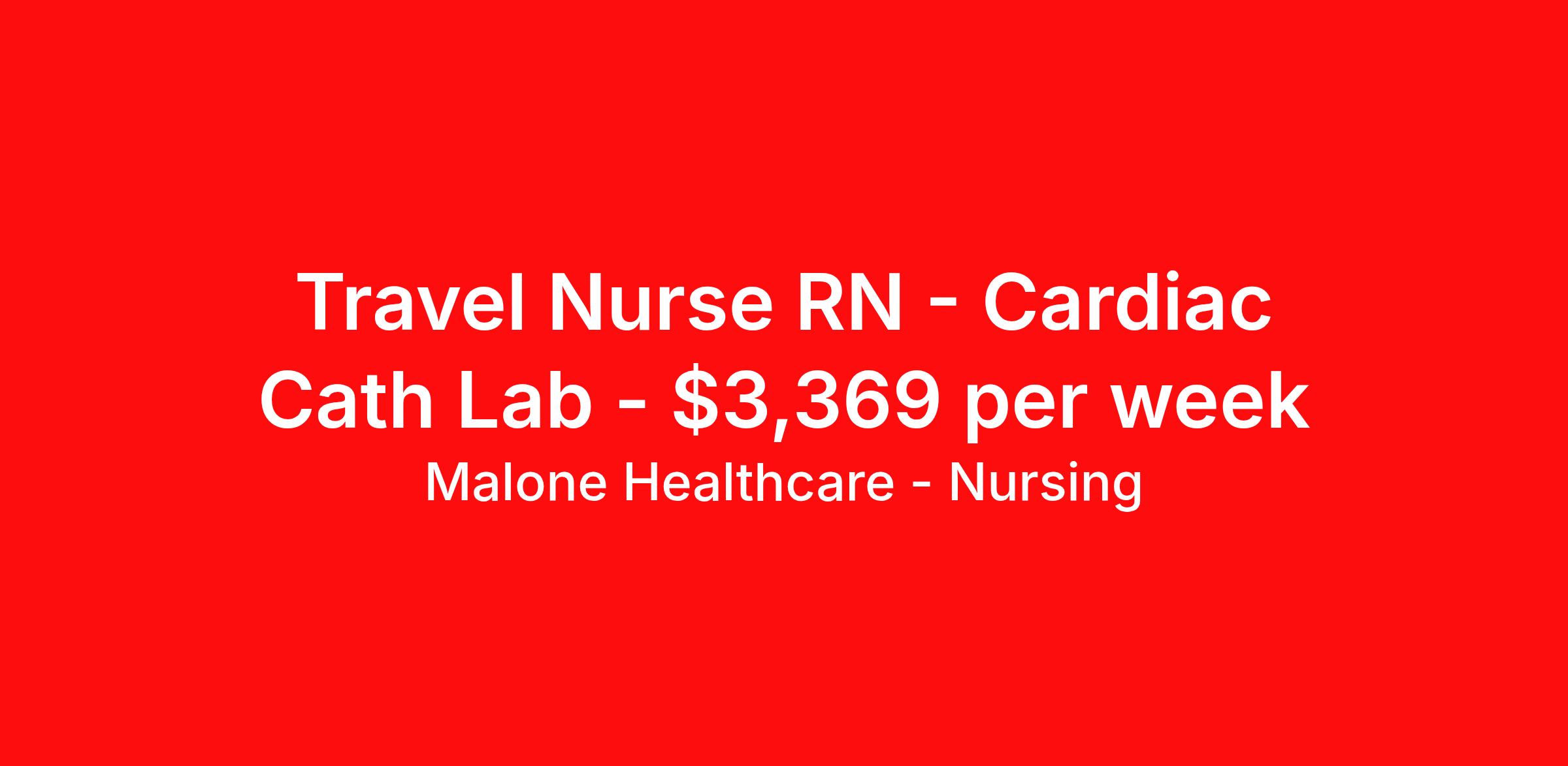 Malone Healthcare - Nursing is seeking a travel nurse RN Cardiac Cath Lab for a travel nursing job in Boston, Massachusetts. Job Description & Requirements Specialty: Cardiac Cath Lab Discipline: RN Start Date: 03/31/2026 Duration: 13 weeks 40 hours per week Shift: 10 hours, nights Employment Type: Travel Cardiac Catheterization Lab RN – Job Summary Breakdown Role Overview Registered Nurse working in the Cardiac Catheterization Lab (Cath Lab) Part of the patient care team , ensuring smooth coordination and continuity of care Focus on patient and family-centered care Key Responsibilities Assist with cardiac catheterization and interventional cardiac procedures Collaborate with physicians, techs, and other care team members Monitor and care for patients before, during, and after procedures Maintain strong communication with patients, families, and hospital staff Ensure high-quality patient care and safety Experience Requirements 2 years ICU experience (preferred) 1 year Cath Lab RN experience Travel experience preferred but not required Schedule Options 3 × 12-hour shifts OR 4 × 10-hour shifts Call Requirements Possible weeknight, weekend, and holiday call No scheduled weekend or holiday shifts During a 13-week contract , expect approximately: 1–2 weeknight call shifts total Possibly 1 weekend call (not guaranteed) Contract Length 13-week travel assignment About Malone Healthcare - Nursing With a commitment to providing a higher standard of service and experience in patient care, Malone Healthcare places expert nurses and allied health professionals in rewarding careers throughout the United States. As a leading healthcare staffing agency, Malone’s focus on compliance and integrity translates to a seamless experience for our team members and partner facilities. When you work with Malone Healthcare, you can rely on over 50 years of proven experience placing exceptional professionals in quality healthcare settings. Benefits Weekly pay Holiday Pay Guaranteed Hours Continuing Education 401k retirement plan Pet insurance Referral bonus Medical benefits Dental benefits Vision benefits License and certification reimbursement Life insurance