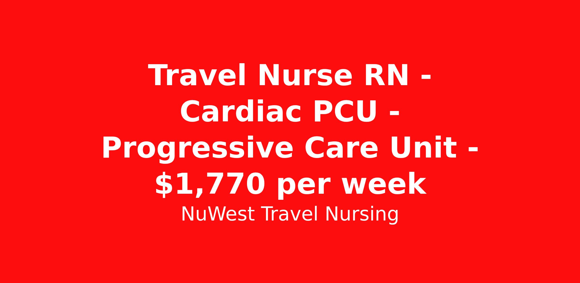 NuWest Travel Nursing is seeking a travel nurse RN Cardiac PCU - Progressive Care Unit for a travel nursing job in Birmingham, Alabama. Job Description & Requirements Specialty: Cardiac PCU - Progressive Care Unit Discipline: RN Start Date: 04/06/2026 Duration: 13 weeks 36 hours per week Shift: 12 hours, nights Employment Type: Travel UAB Hospital - Birmingham, AL Unit: Cardiac PCU/Stepdown Duration: 13-weeks Start: ASAP Schedule: 3x12s - Nights Must Haves: 2 years of Cardiac PCU/Stepdown RN experience Active AL or Compact RN license Active BLS, ACLS certification Travel experience preferred UAB Hospital - Birmingham, AL Unit: Cardiac PCU/Stepdown Duration: 13-weeks Start: ASAP Schedule: 3x12s - Nights Must Haves: 2 years of Cardiac PCU/Stepdown RN experience Active AL or Compact RN license Active BLS, ACLS certification Travel experience preferred